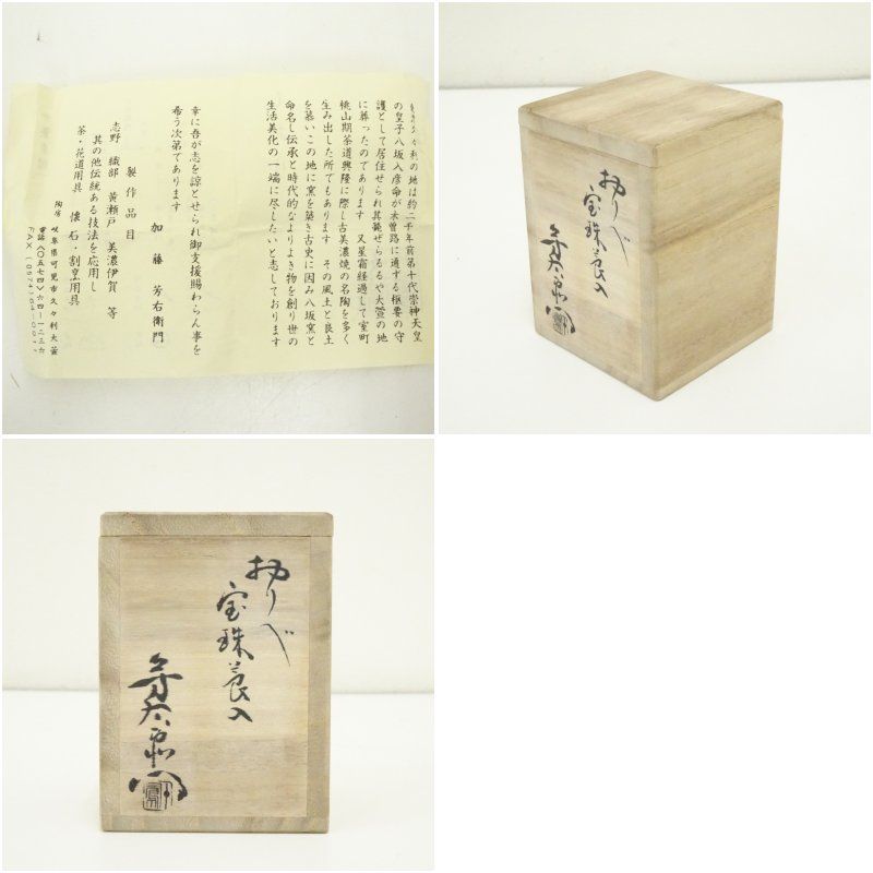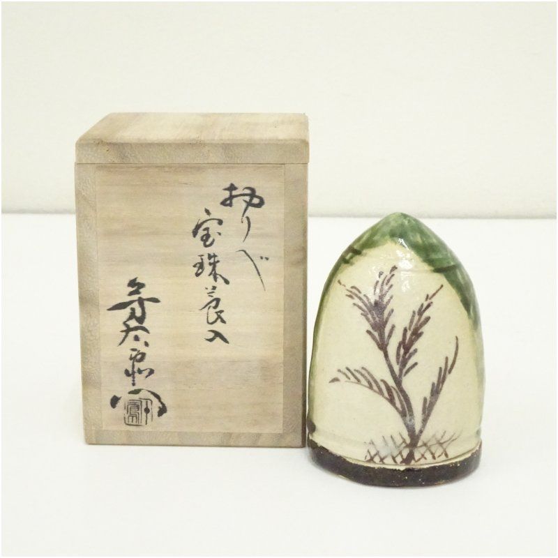 加藤芳右衛門(十鳳)造 織部宝珠莨入(共箱) 煙草入れ 茶道具 茶道 おしゃれ たばこいれ 喫煙具 刻み莨入れ 刻み煙草入れ レトロ 骨董