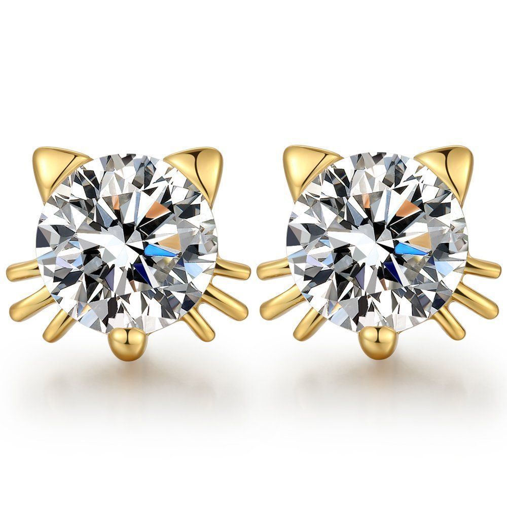 きらきら-猫-ゴールド jiamiaoi 猫 ジルコン ピアス ネコ CZ キュービック ジルコニア ピアス スタッドピアス かわいい スタッド シルバー ピアス ジルコニア ストーン レディース金属アレルギー対応