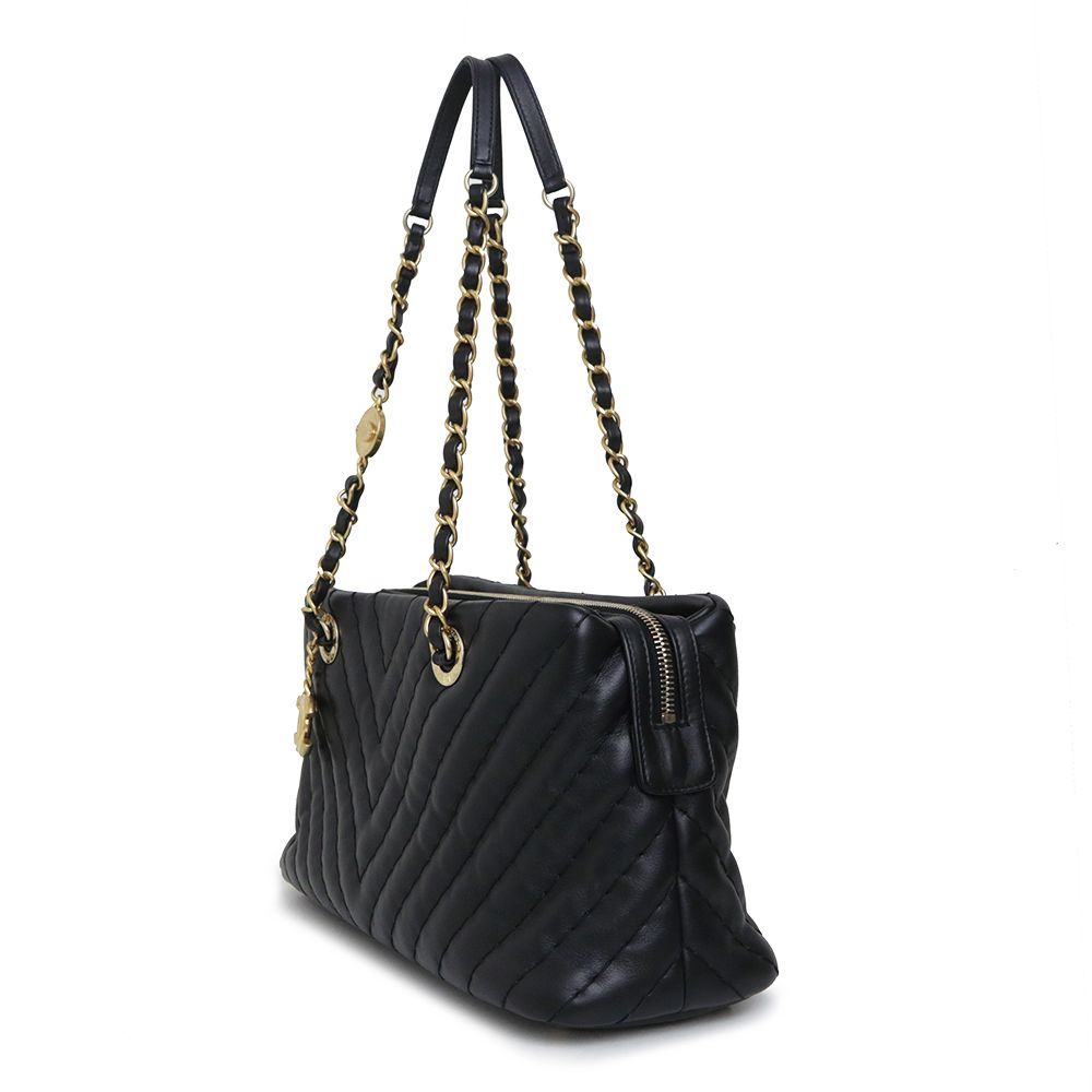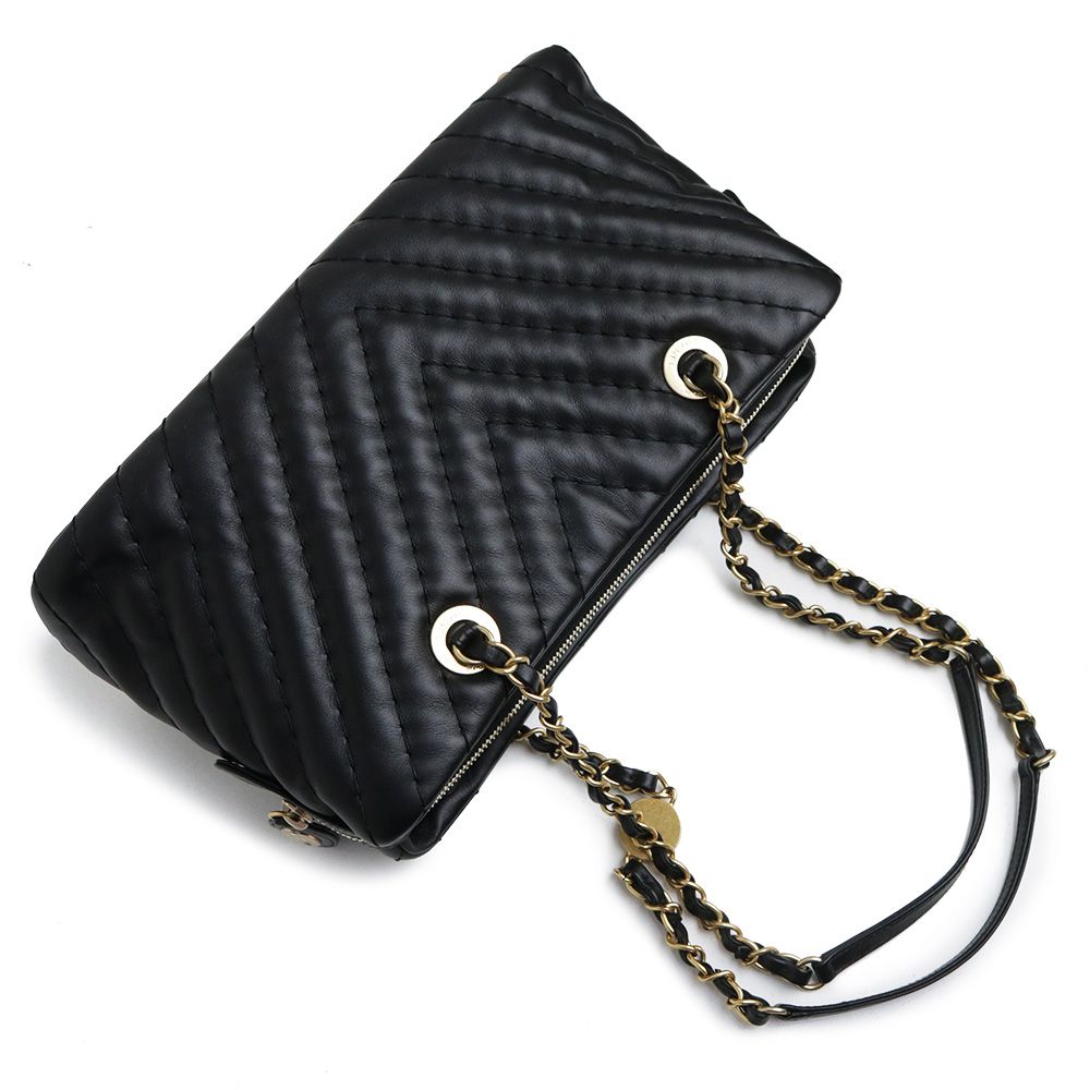 【商品紹介】Vステッチにココマークチャームがポイントの、シェブロンシリーズのチェーンショルダーバッグ。豊富なポケットと取り外し可能なファスナー式ポーチ付きで、持ち物の収納にも便利です。