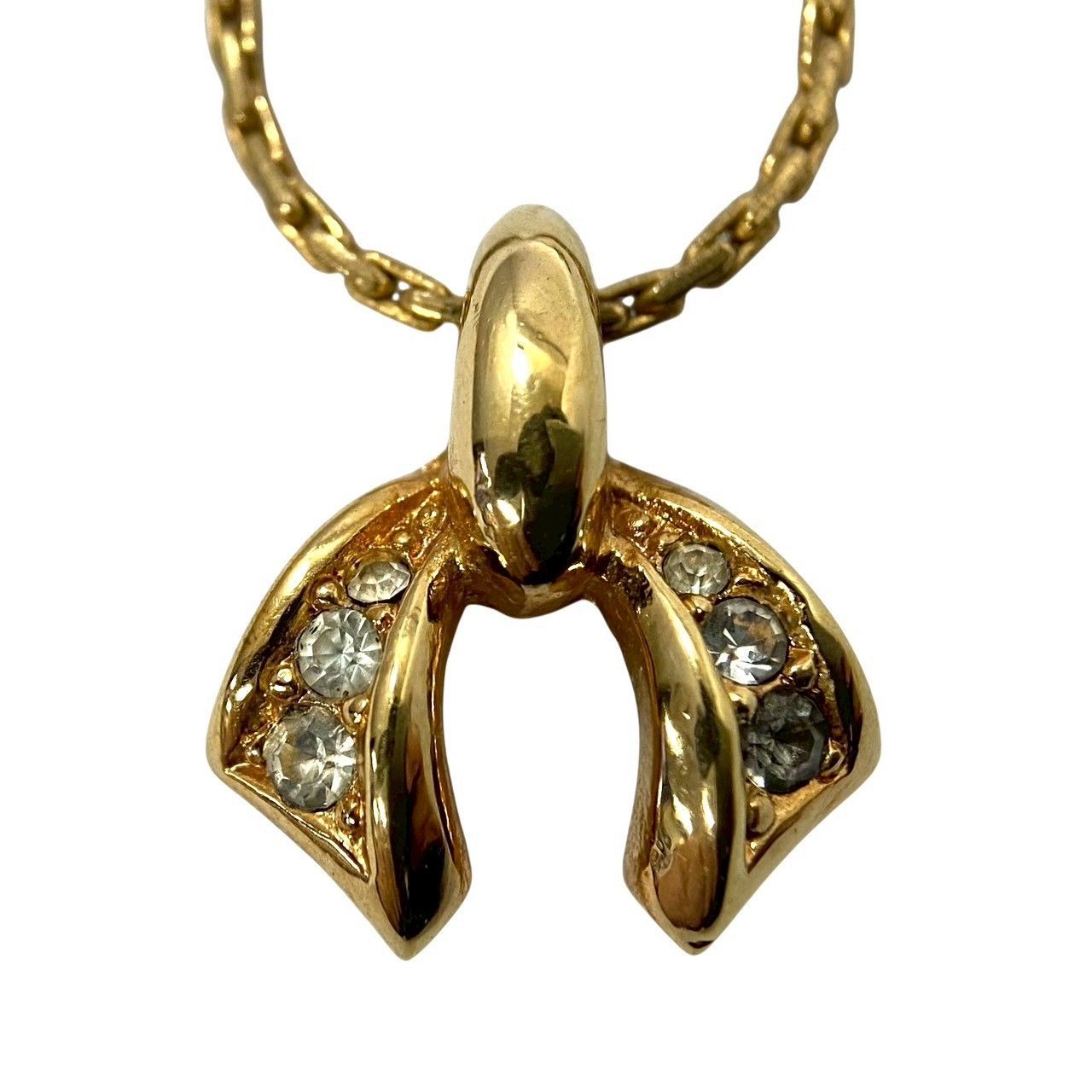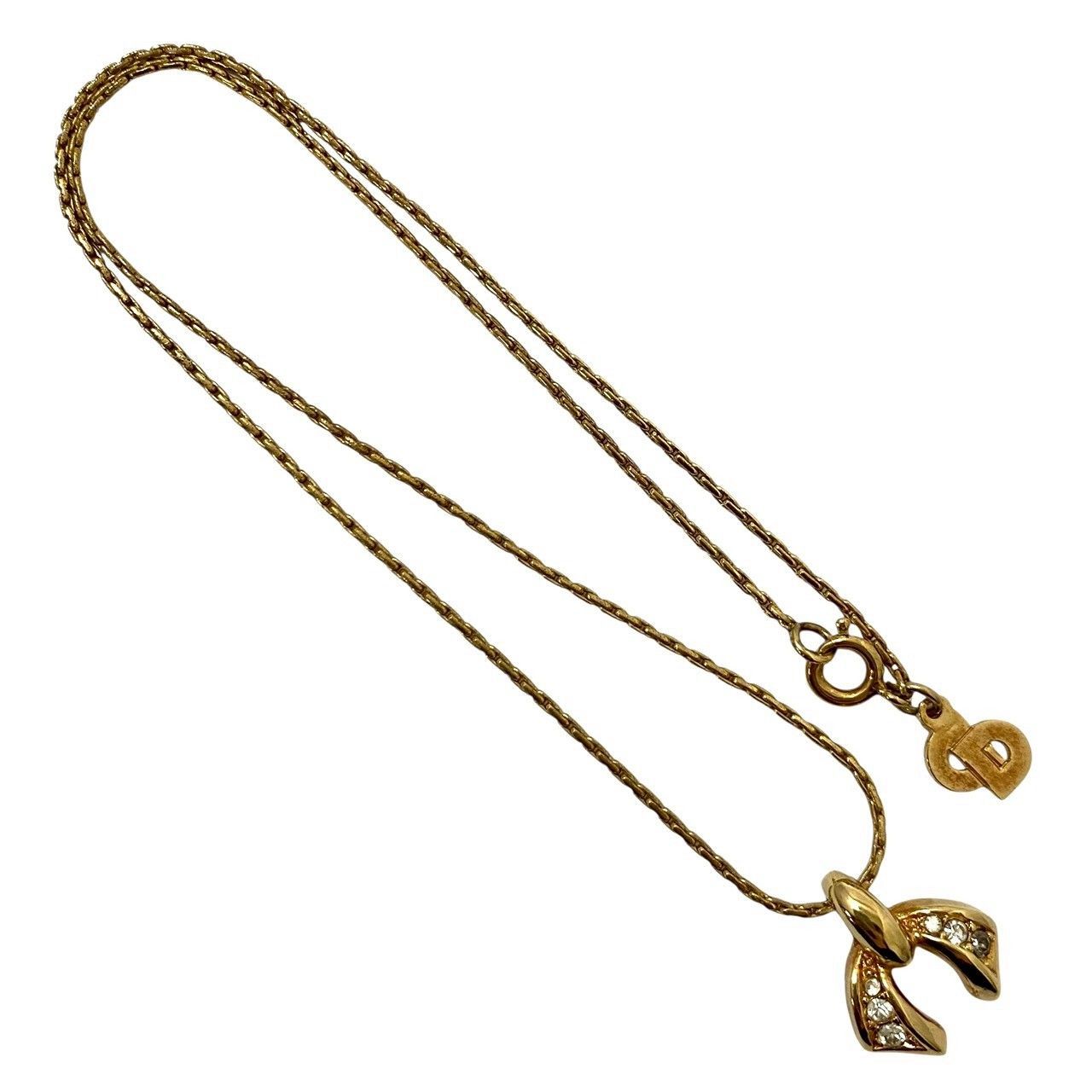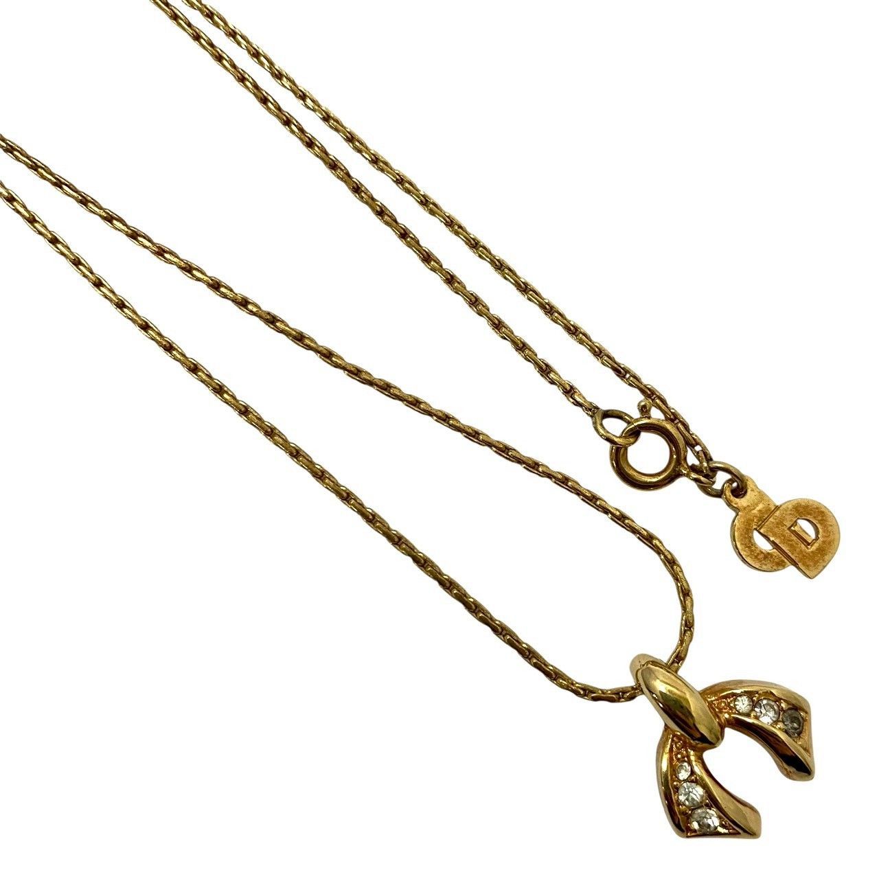 M【Dior】リボン モチーフ ネックレス ゴールド/金カラー ラインストーン ヴィンテージ ペンダント Christian Dior/クリスチャンディオール (62180OY4a)