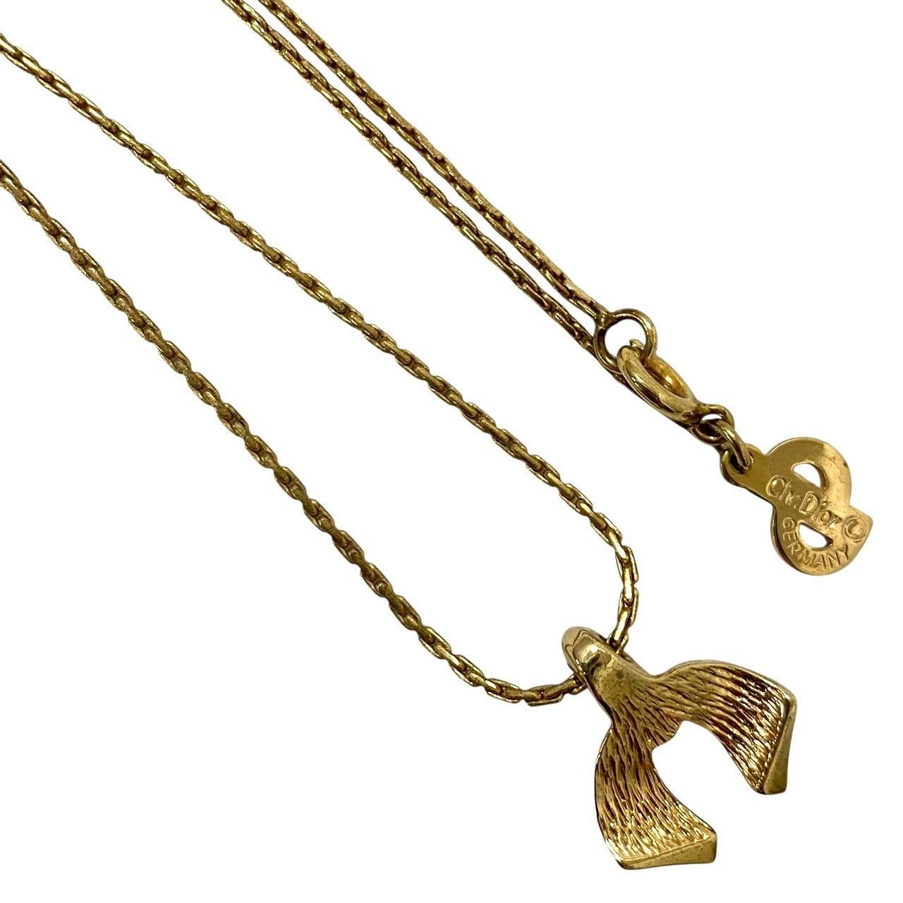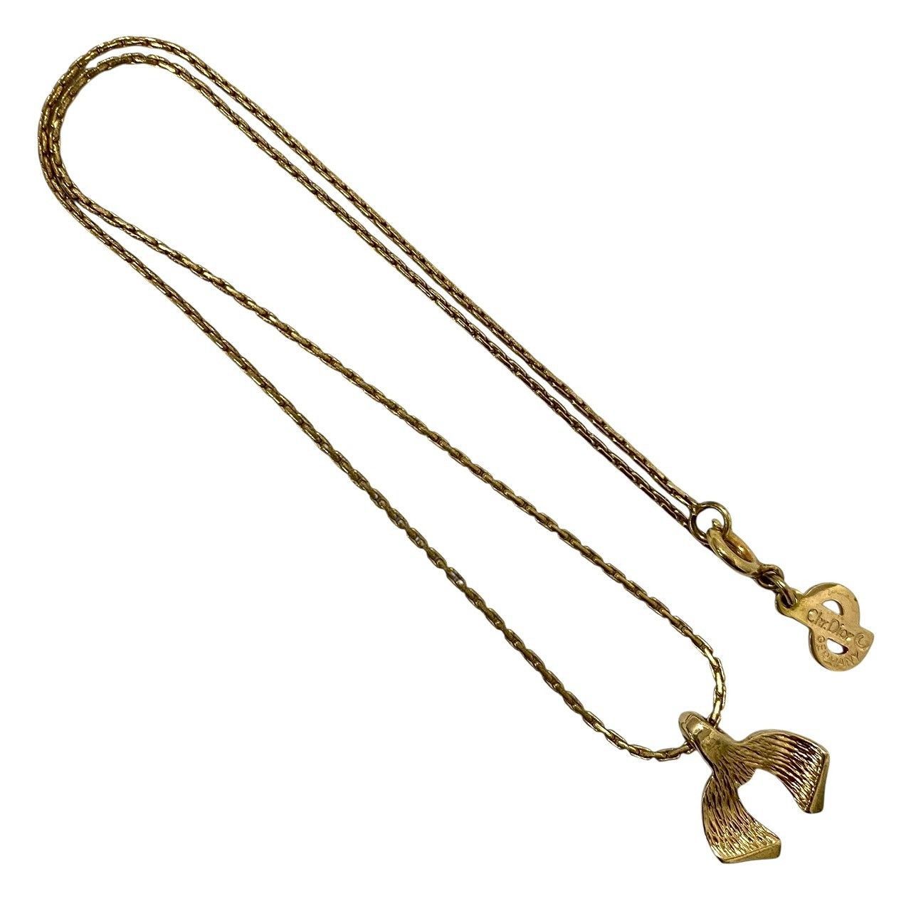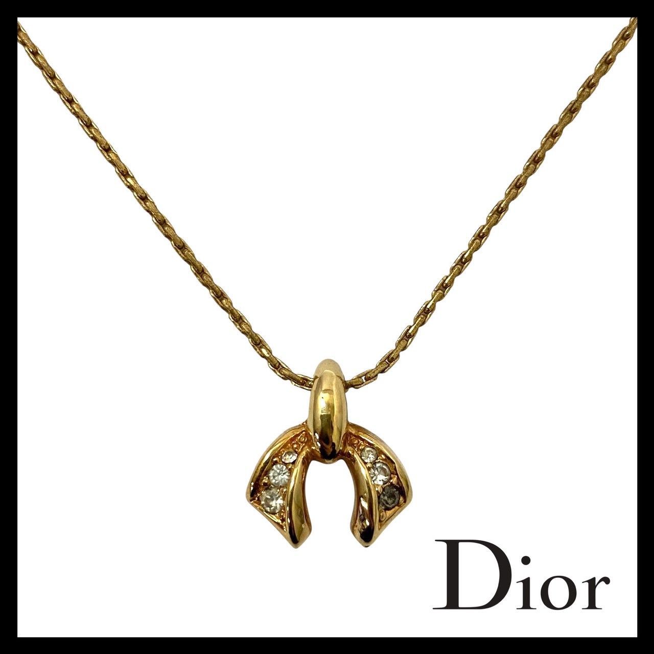 M【Dior】リボン モチーフ ネックレス ゴールド/金カラー ラインストーン ヴィンテージ ペンダント Christian Dior/クリスチャンディオール (62180OY4a)