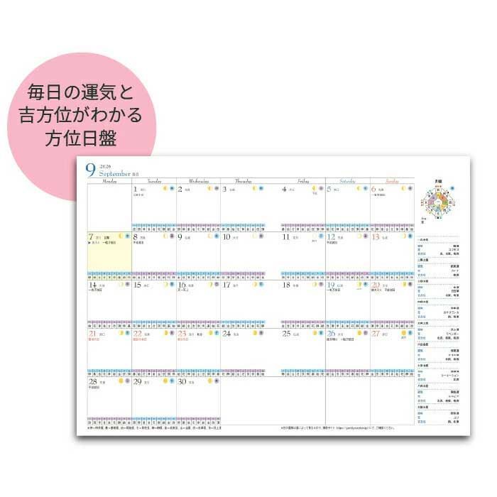 スケジュールページには、六曜、二十四節気、雑節、月の満ち欠け、天中殺(よくない日)、一粒万倍日、天赦日、天一天上などの選日も掲載