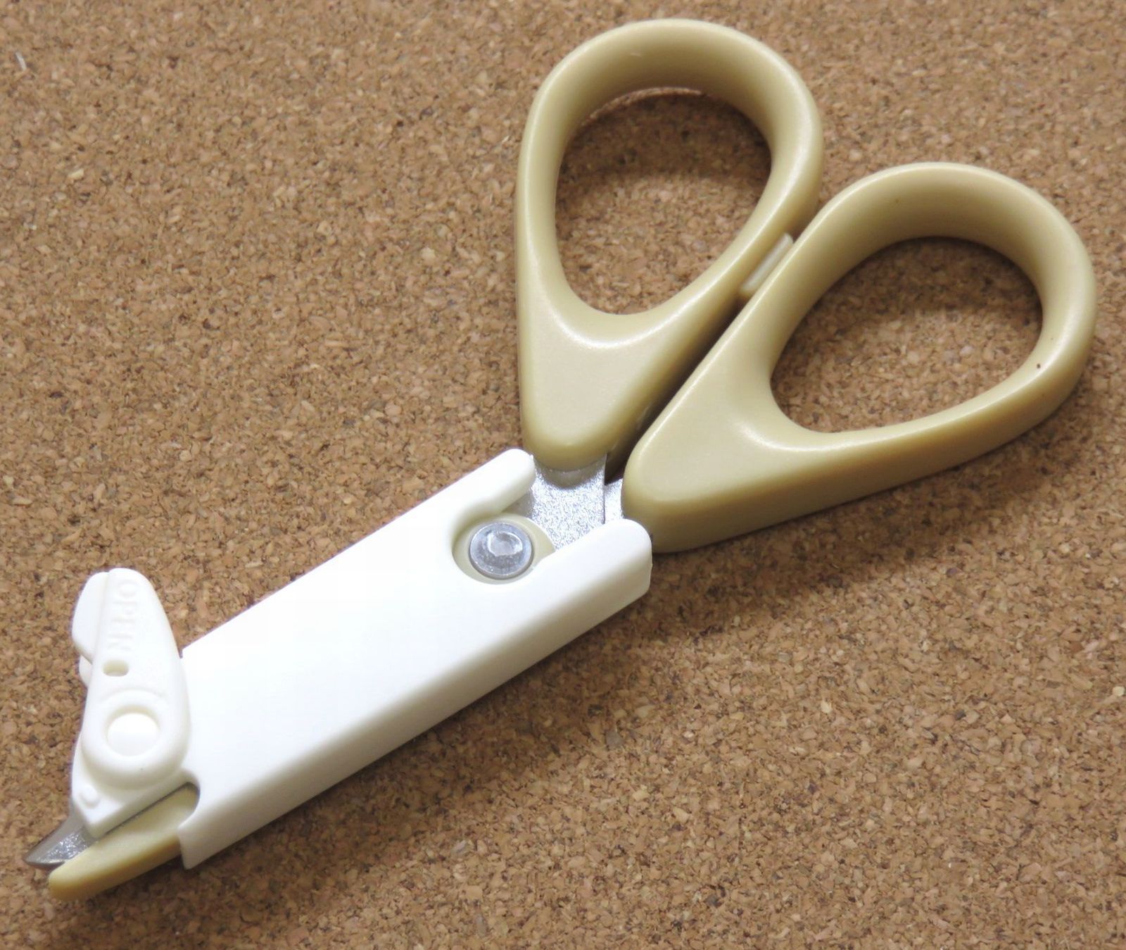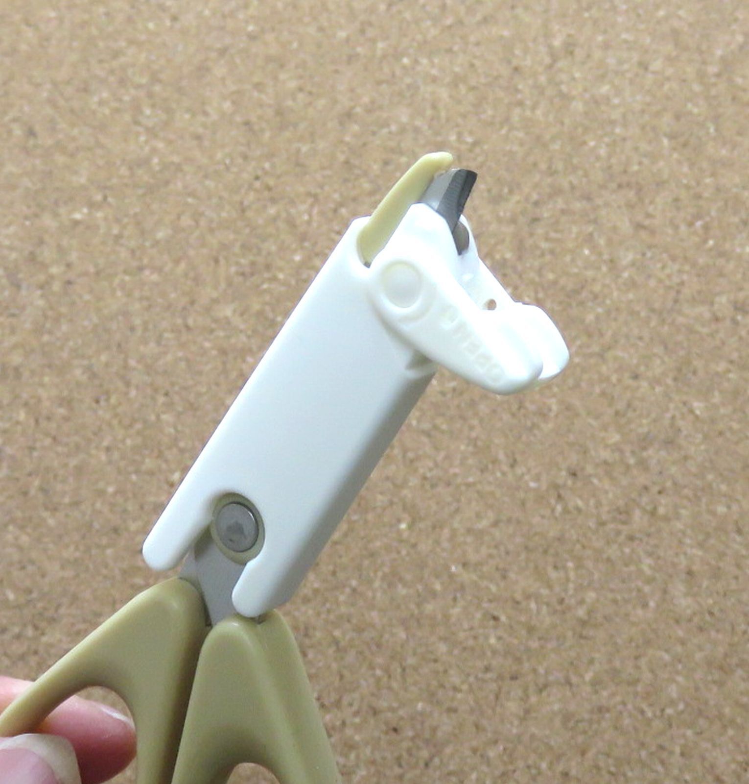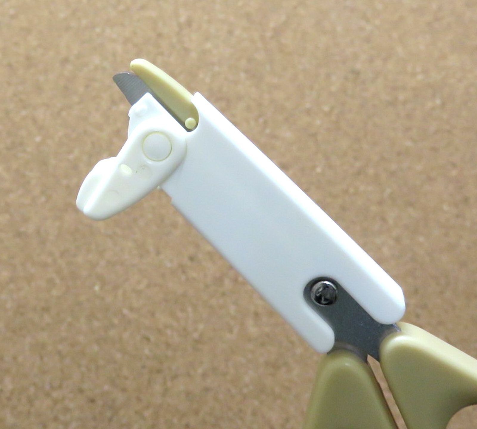 「刃先ガード」で刃が商品に当たらず傷つけにくい。
