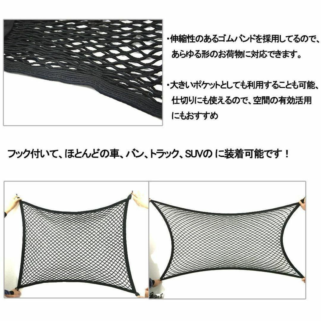 【素材】 ゴム、プラスティック(他店のラゲッジネットはネット部分がナイロンを採用し、本店のはゴムを採用して、弾力がアップられます。高さがご貨物によって伸べられます。)