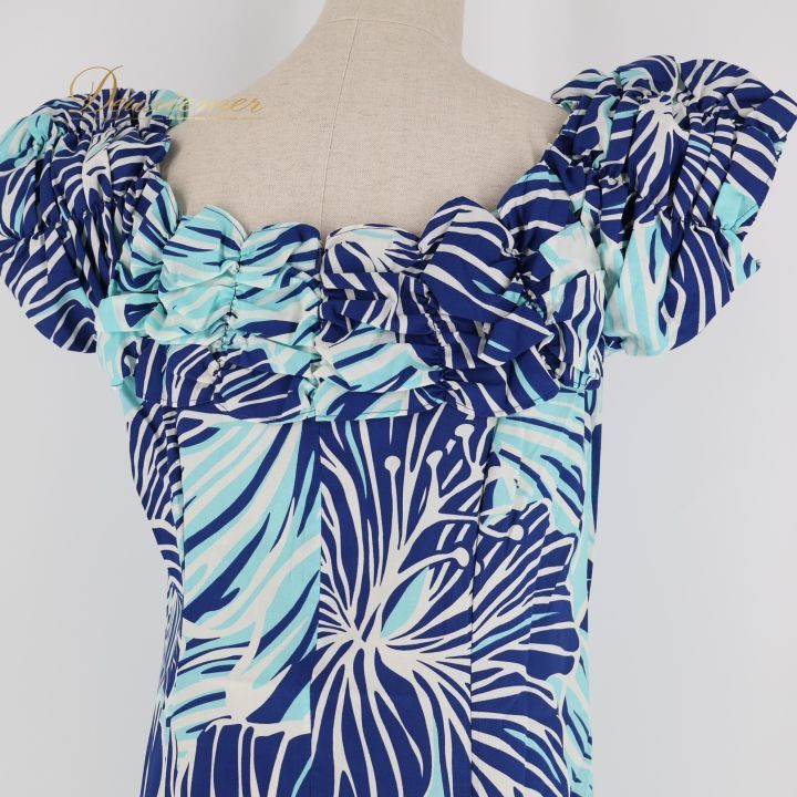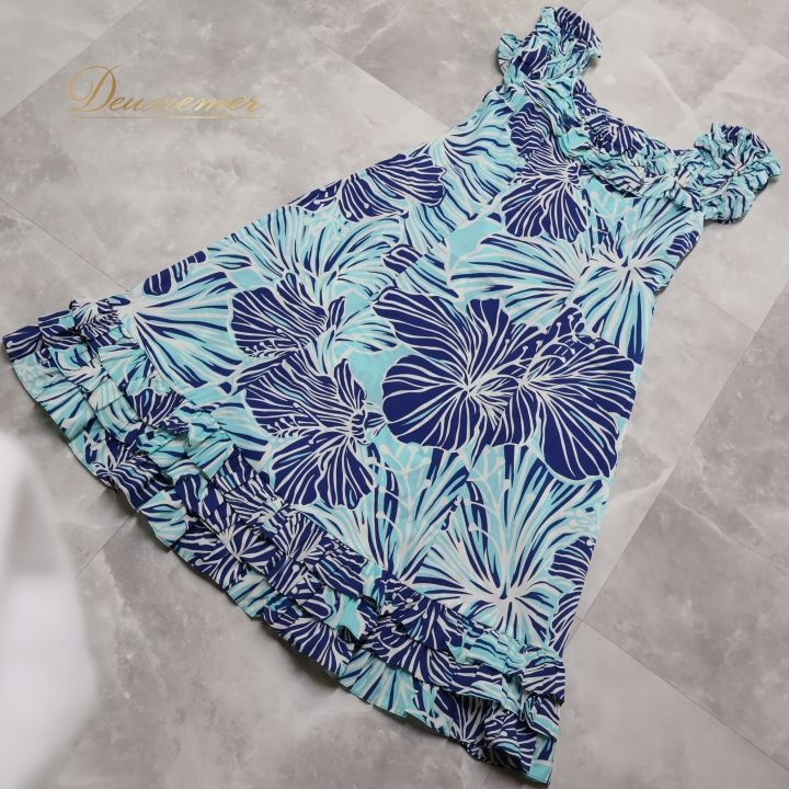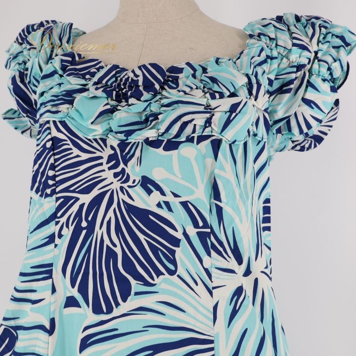 #フラダンス #ハワイアンファッション #ダンス衣装 #ワンピース #ドレス #ノースリーブ #ブルー #ホワイト #ポリエステル #綿 #爽やか #女性用トルソー #サイズ11 #サイズ12 #夏ファッション #リゾートスタイル #華やか #ファッション #おしゃれ #CCFashions #ENUTSU