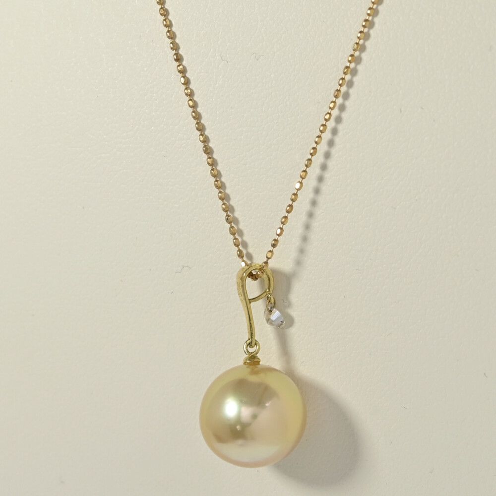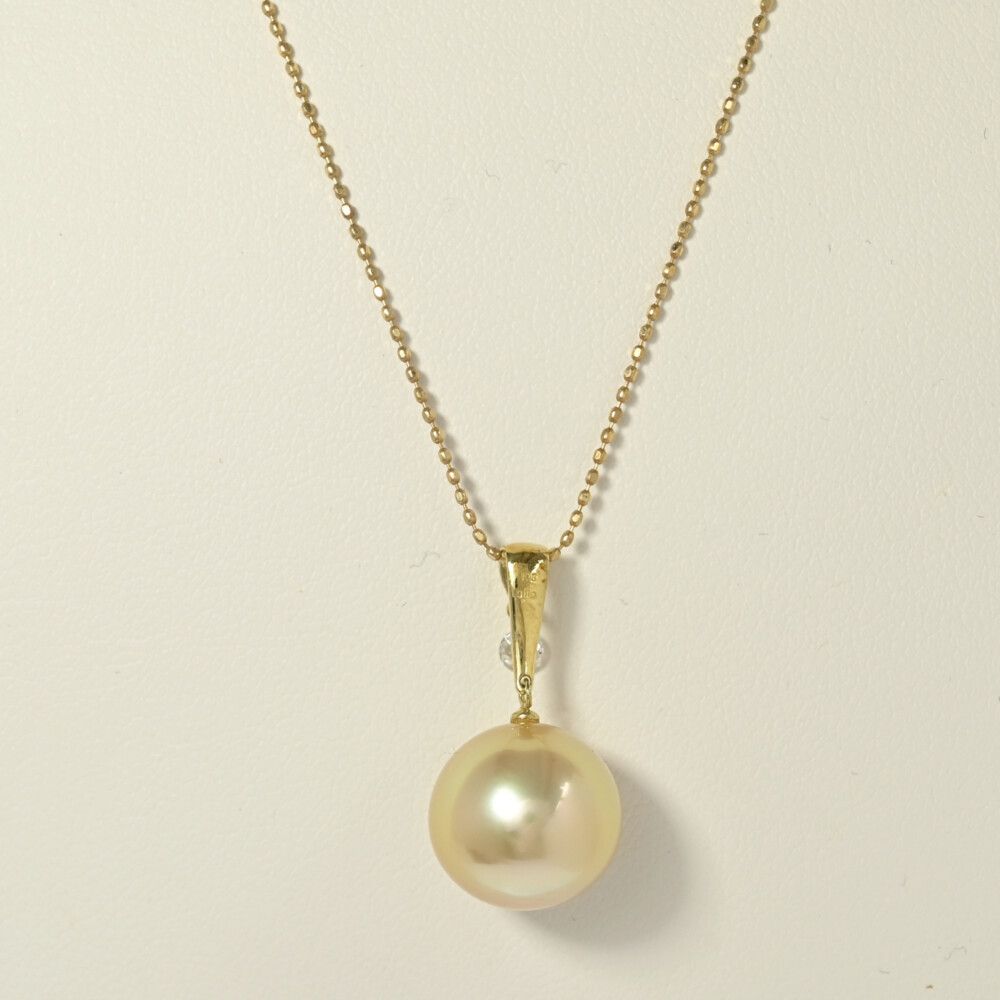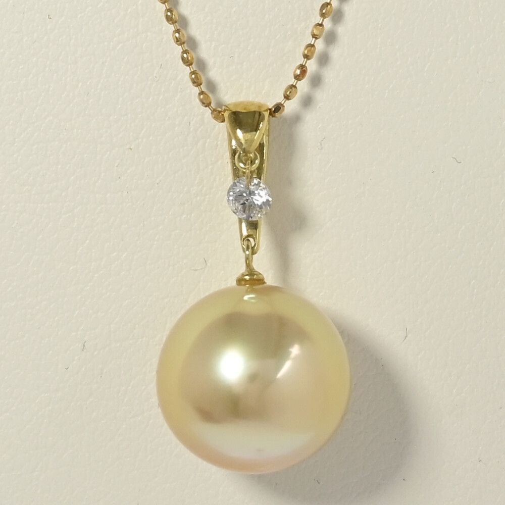 Φ11.5-12.0mm/PA0.1ct/1P・白蝶ゴールド真珠/シロチョウ/サウスシー パール/ダイヤモンドネックレス・ペンダント/K18YG-4.6g【♀】【S】【レディース】/h251217★■599614【中古】