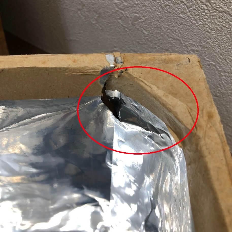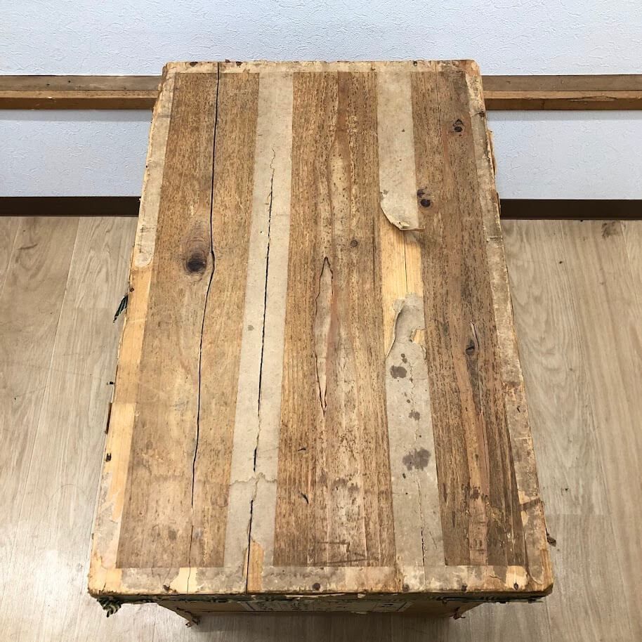 経年品のため、木材のひび割れ、ブリキの破れ、ラベル剥がれ等ございます。(画像赤丸部分)