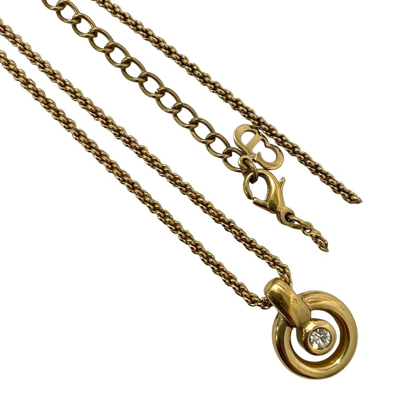 U【Dior】ネックレス チェーン切れ ゴールド/金 カラー ラインストーン サークル ラウンド ヴィンテージ ペンダント Christian Dior/クリスチャンディオール (57864OT1a)