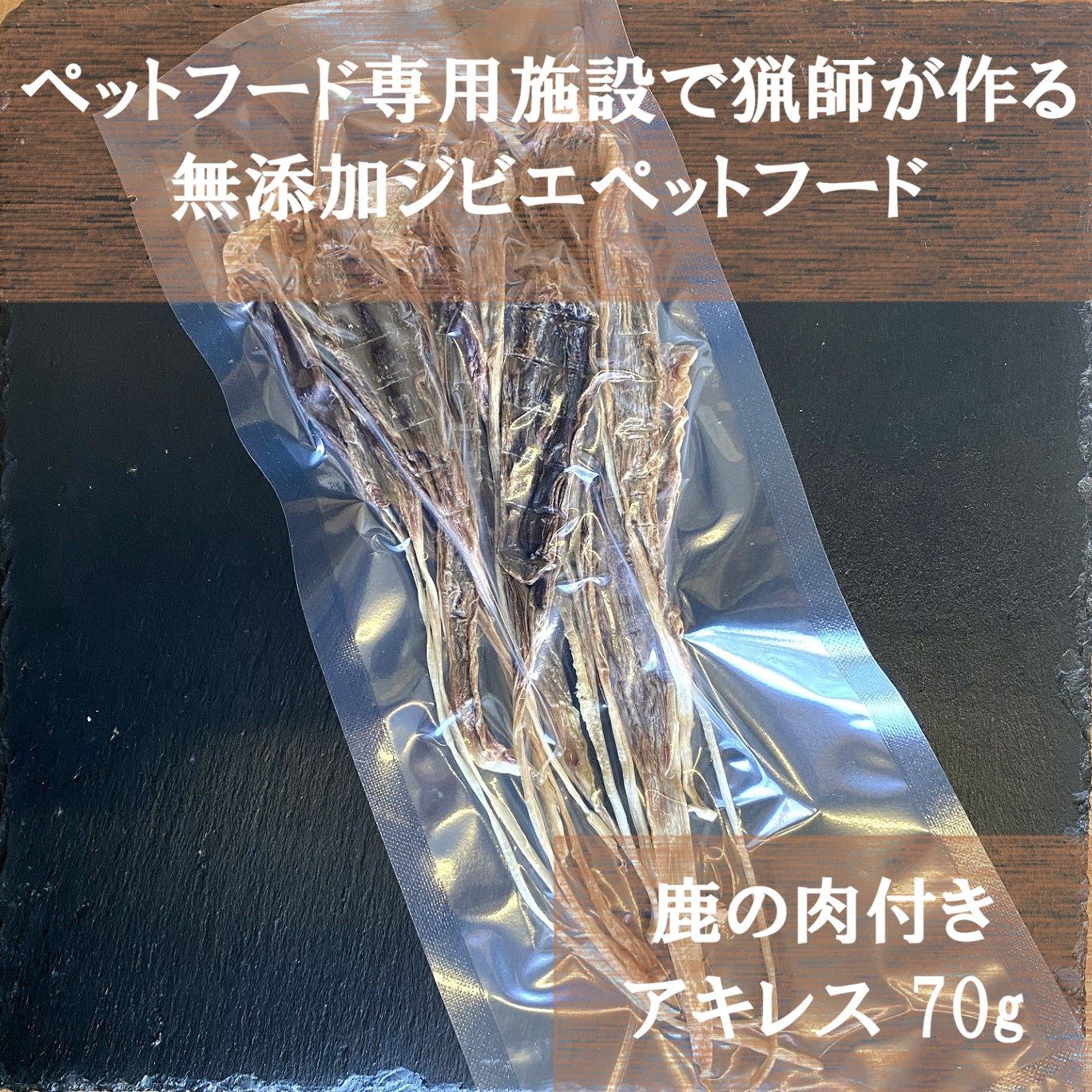 鹿のすね肉付きアキレス腱ジャーキー70gです。