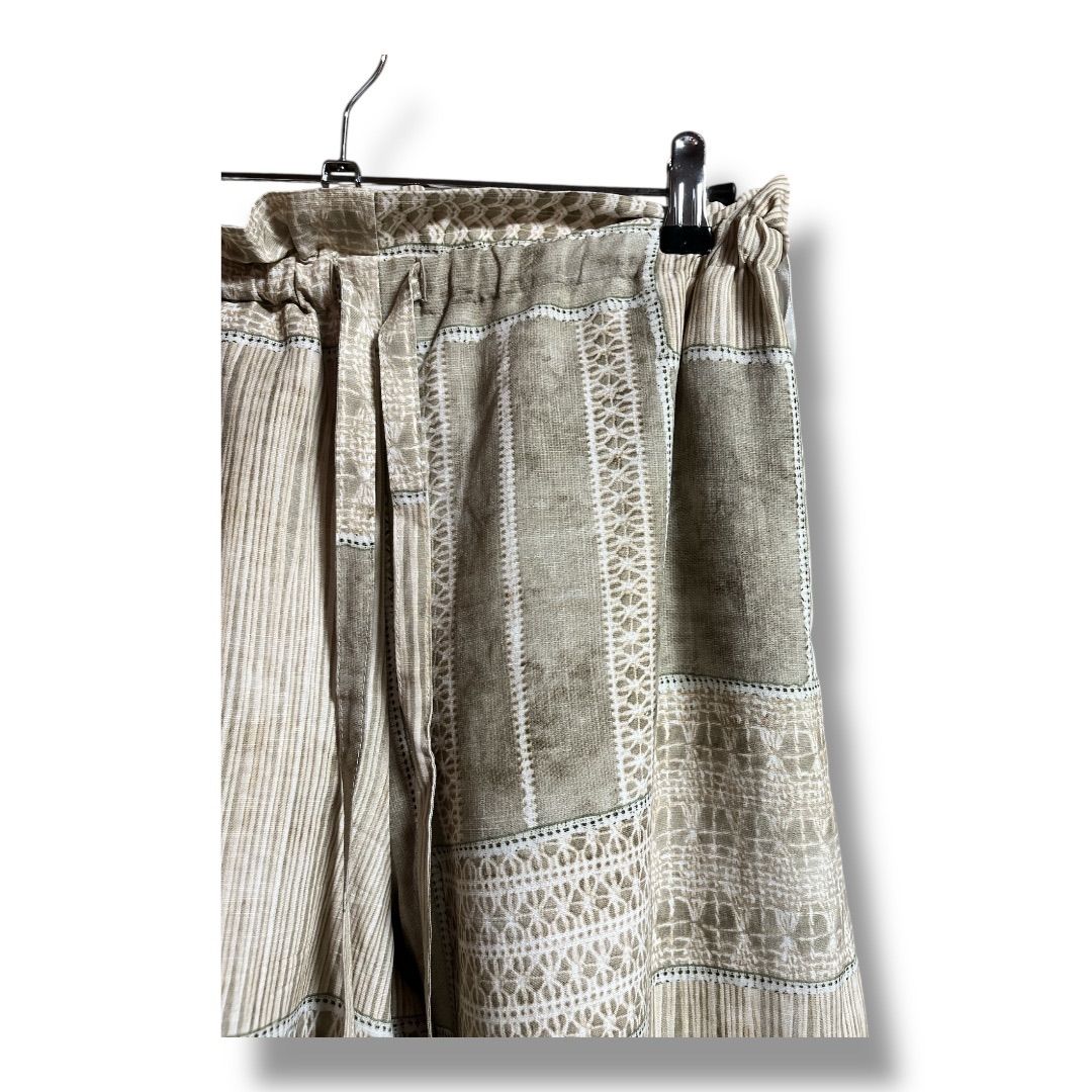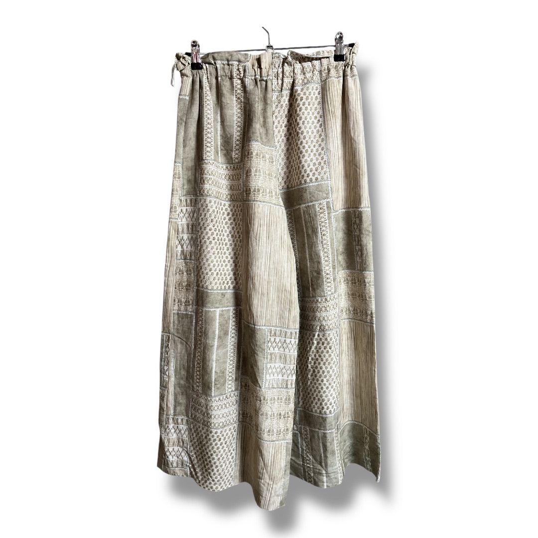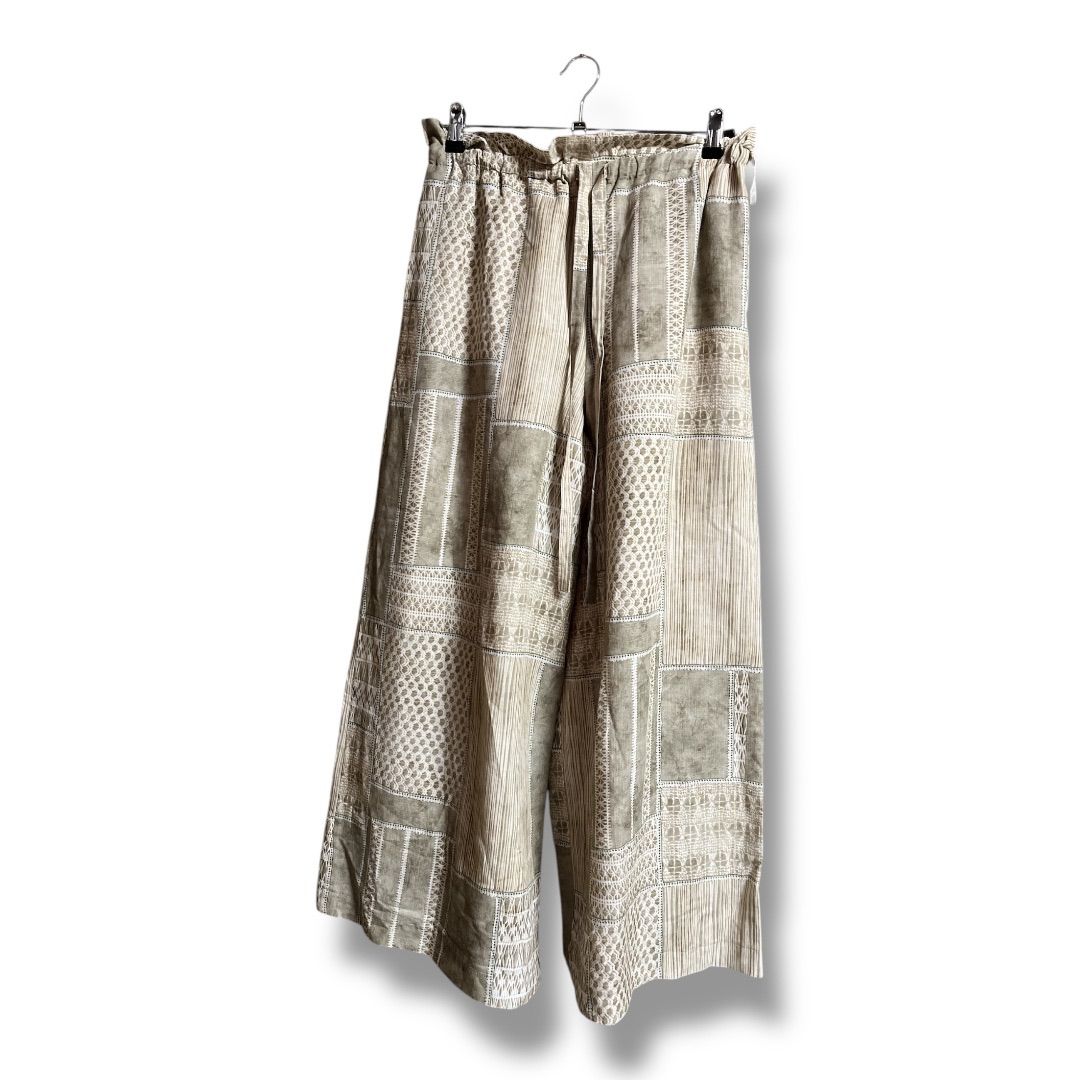 junashida ジュンアシダ パッチワーク プリントパンツ ワイドパンツ ウエストゴム フレアパンツ 総柄 リネン混 レディース サイズM ベージュ 春 久喜倉庫店 18 No.K1080
