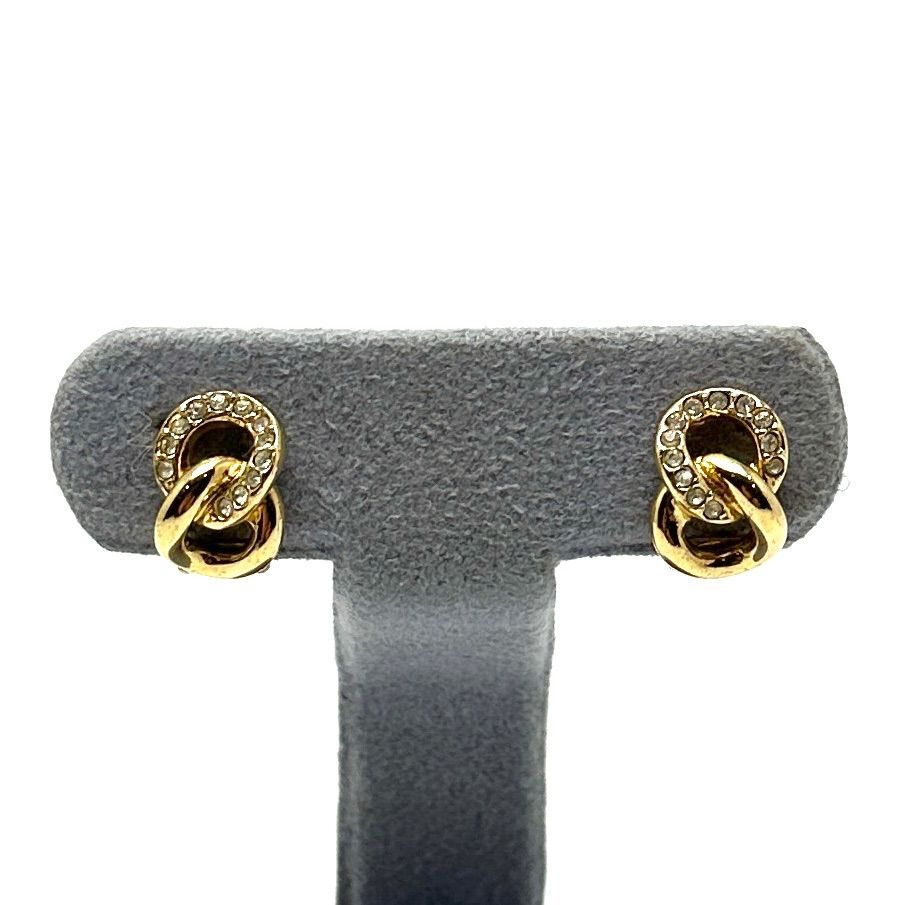 【商品説明】エレガントなラインストーンイヤリング。ゴールドのベースに輝くラインストーンが華やかさをプラスし、シンプルながらも存在感のあるデザインです。