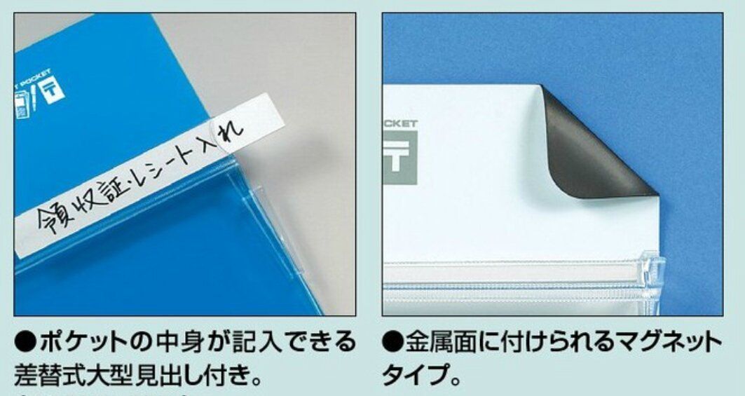 ●ポケットの中身が記入できる差替式大型見出し付きです。
