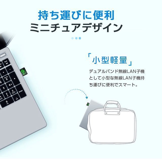 ・【携帯性】ノートパソコンなどに装着したままでもUSBポートからの「飛び出し」が気にならず、持ち運ぶことができます!