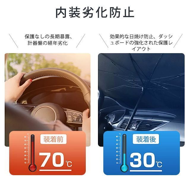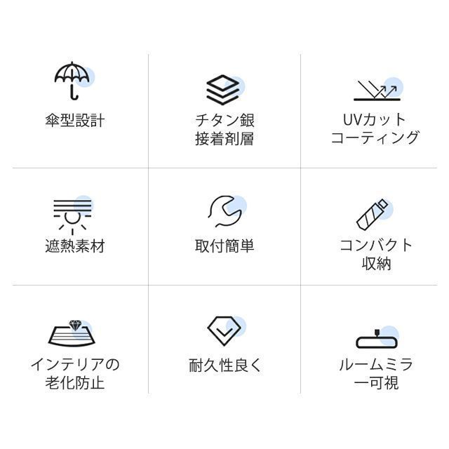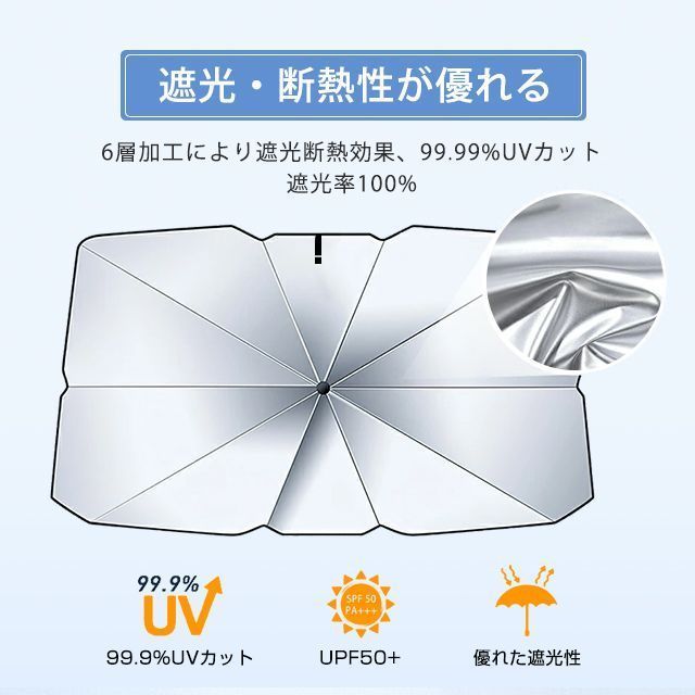 この車用サンシェードは複合チタン銀接着剤を採用し、99%の紫外線を効果的に遮断し、高品質のインパクトクロス+チタンシルバー接着剤を使用した車用サンシェードは、熱を遮断して太陽光を反射し、車内の温度を効果的に下げ、ダメージや経年劣化を防ぎます。