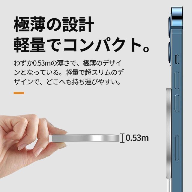 【持ち運び用便利】軽量でありながら上質感があり、持ち運び用としても重宝します。自宅、オフィス、外出先などで、すばやく効率的に充電ができます。また、マグセーフスタンドで使用する場合、このサイズでもぴったりです。ご注意:ケース装着のまま充電する場合、Mag充電対応のケース(磁石付き)をご利用ください。