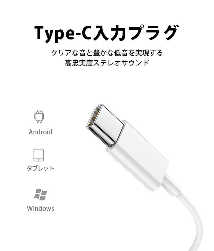 マイク付き イヤホンはType-C国際認証インターフェイスのプラグを採用し、24メッキ加工を施し、錆びにくくより長く使っていただけると同時に、Hi-Fiサウンドを提供します。