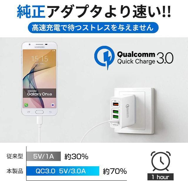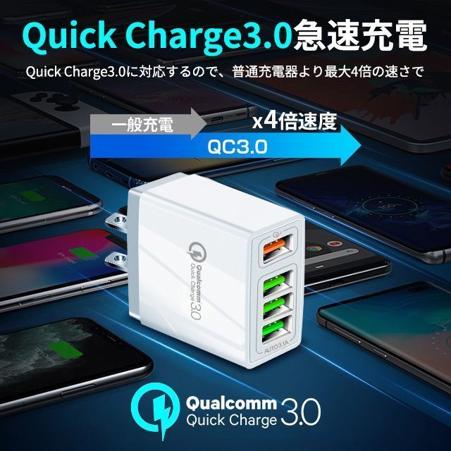 【革新的な充電スピード】Quick Charge(急速充電)3.0 充電技術を利用して、フルスピード充電が実現します。Xperia、HTC、GalaxyなどのQC3.0対応機種を超急速充電可能です。