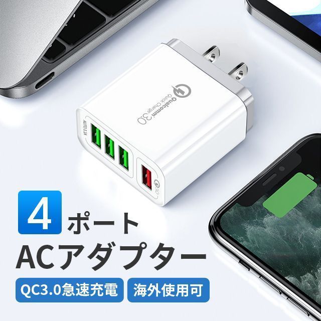 【最適な充電を自動判別】 4つのポート(最大3.1A出力)はスマートIC搭載し、USB機器を自動検出のでお使いの機器に合わせて最大出力で急速充電を開始します。