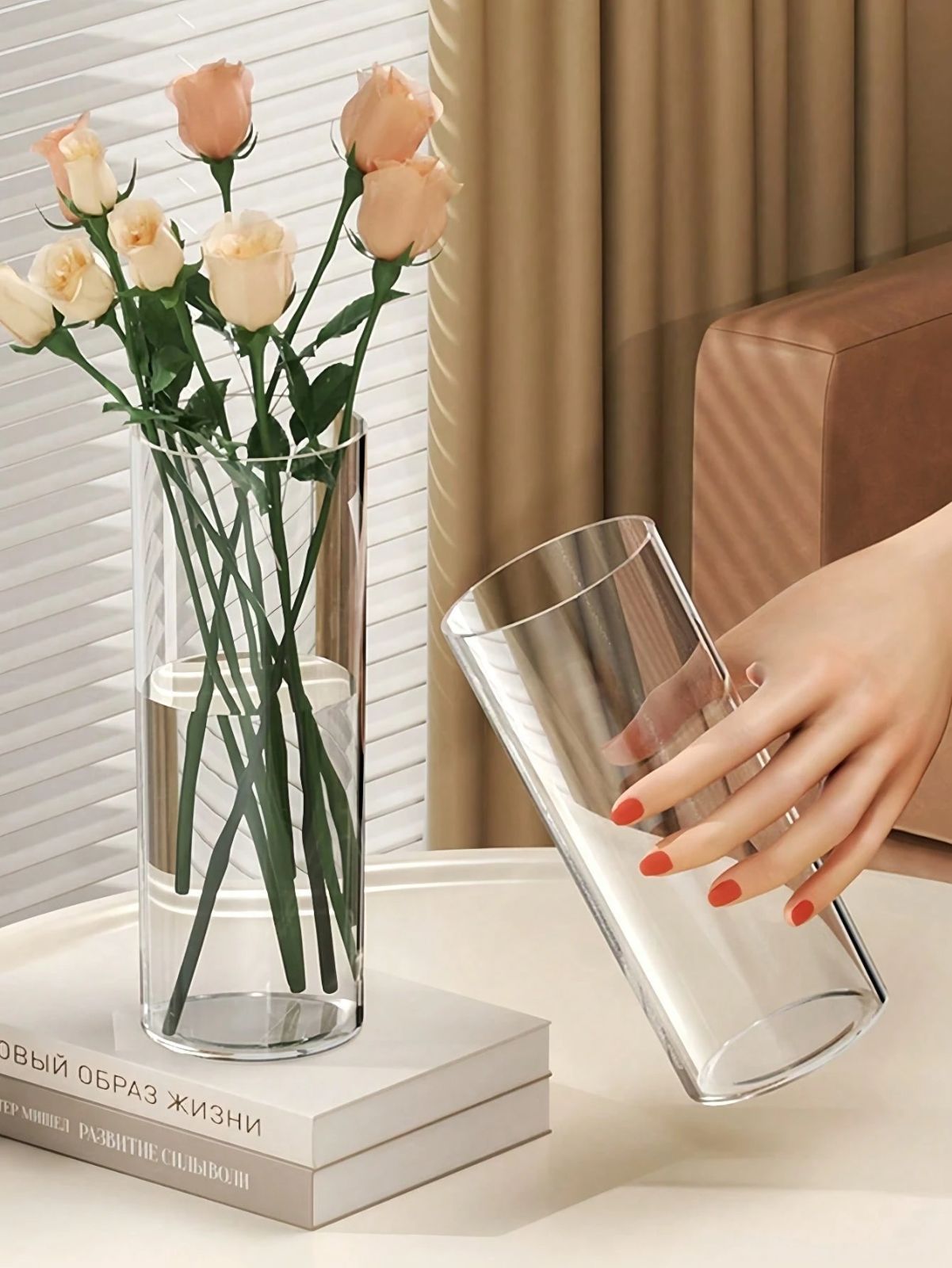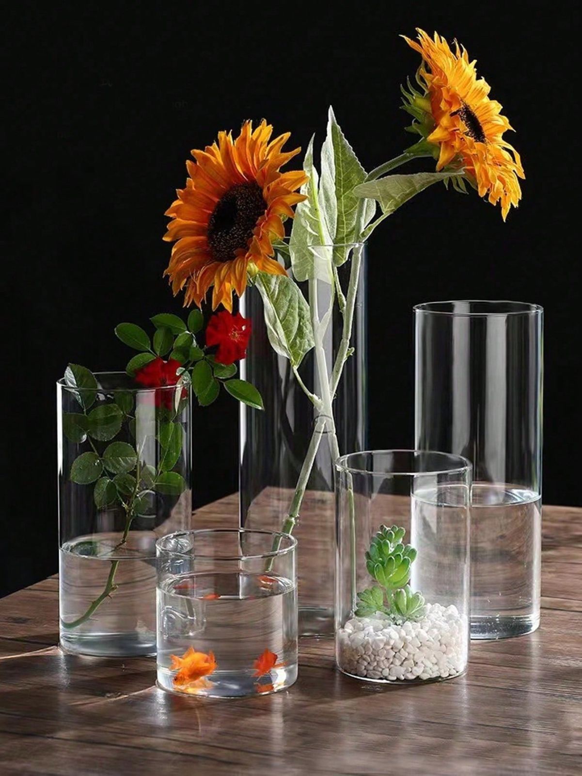 1個 大型クリアガラスベース - モダンな花瓶、インテリア用、魚鉢やプランターとしても使える、リビングルームや寝室のセンターピース