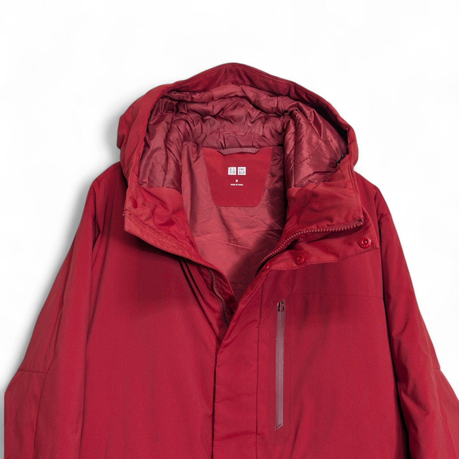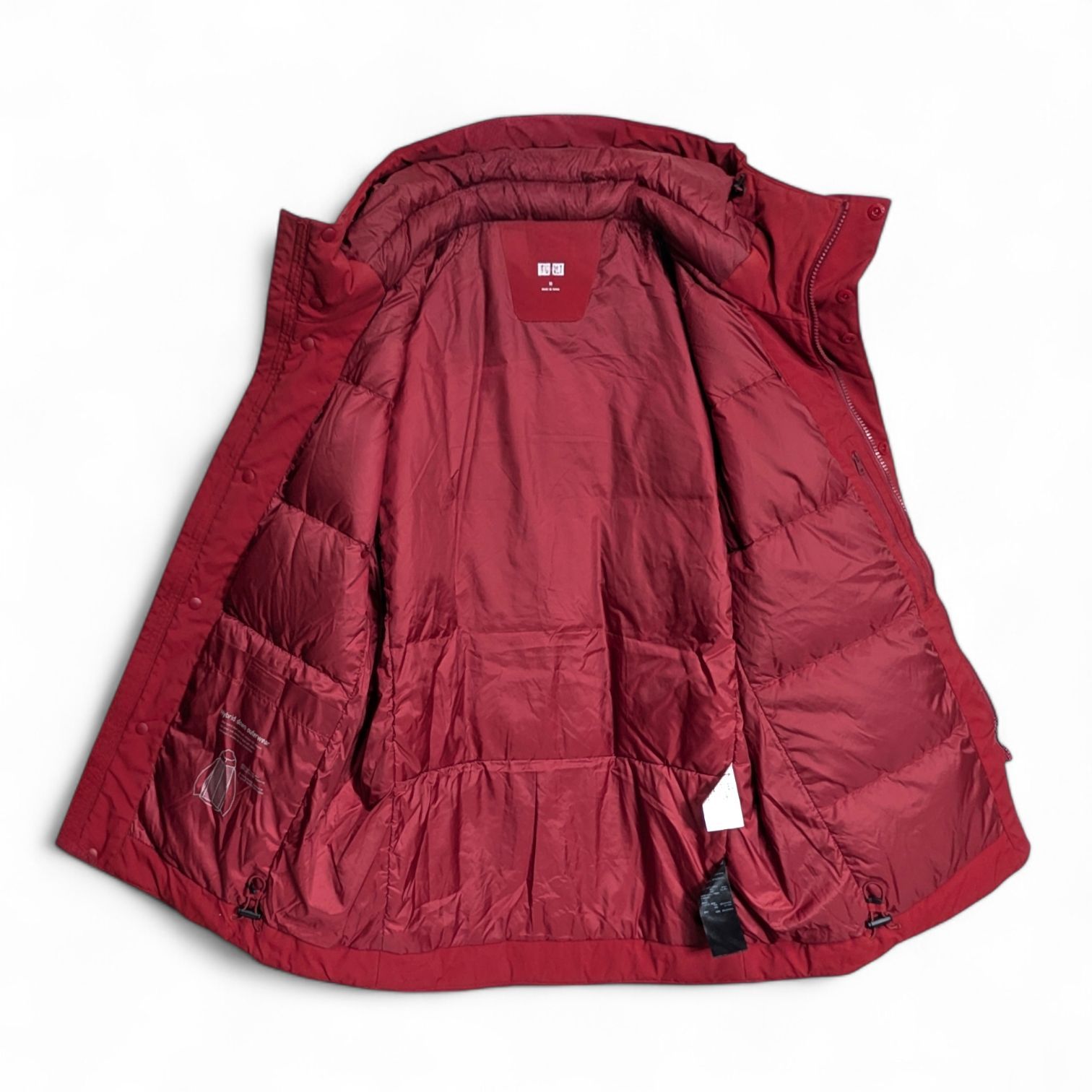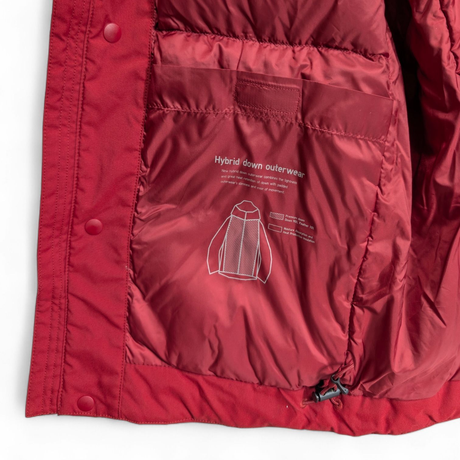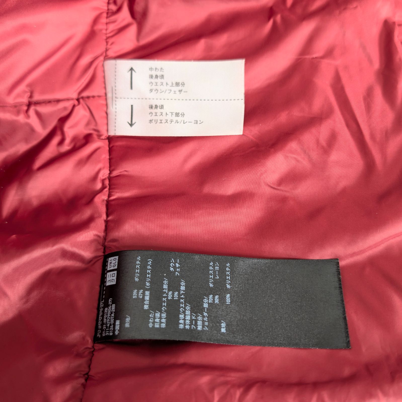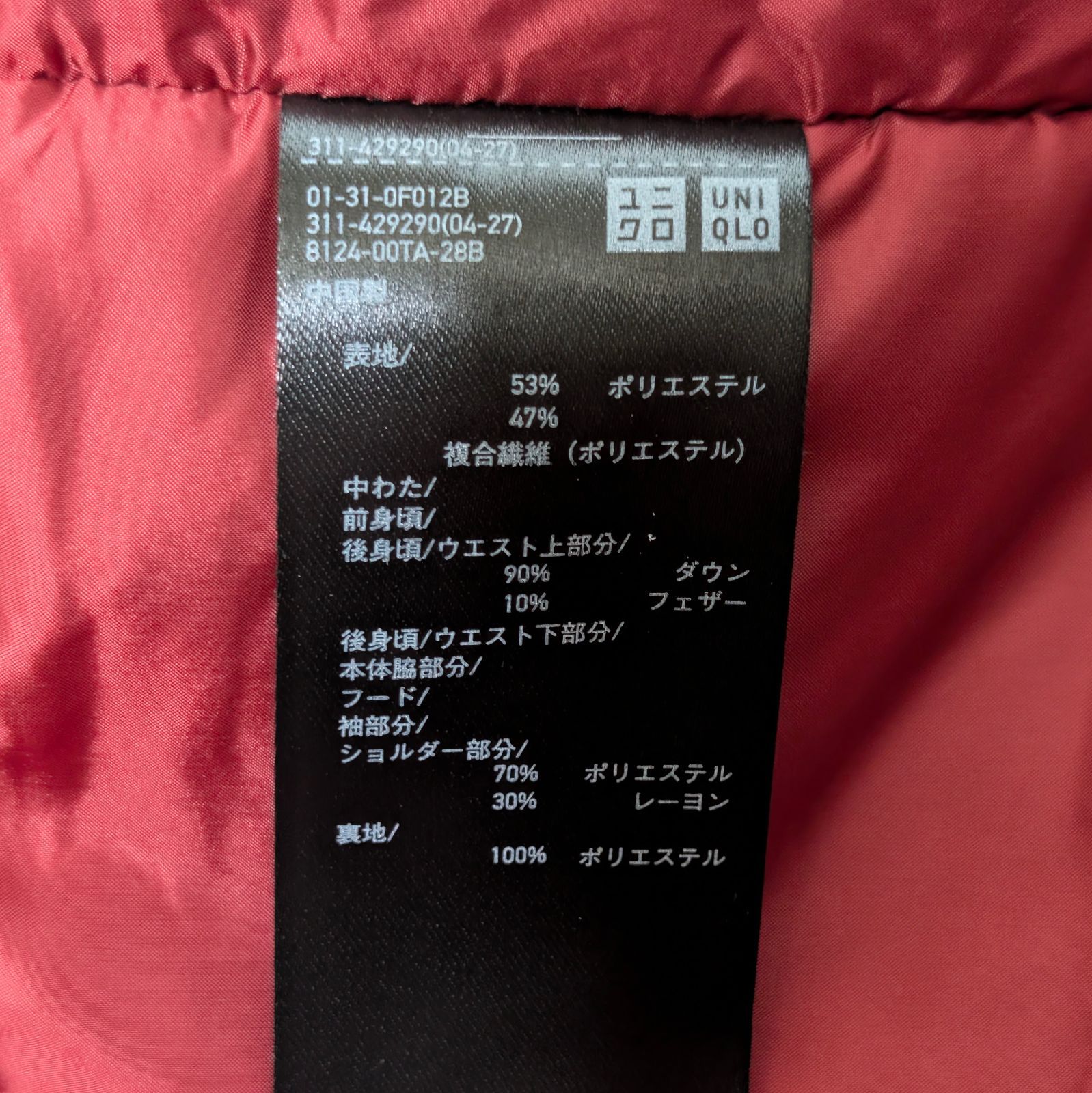 前身頃はダウン、後身頃の腰から上はダウン、後身頃の腰から下は吸湿発熱ポリエステル綿。