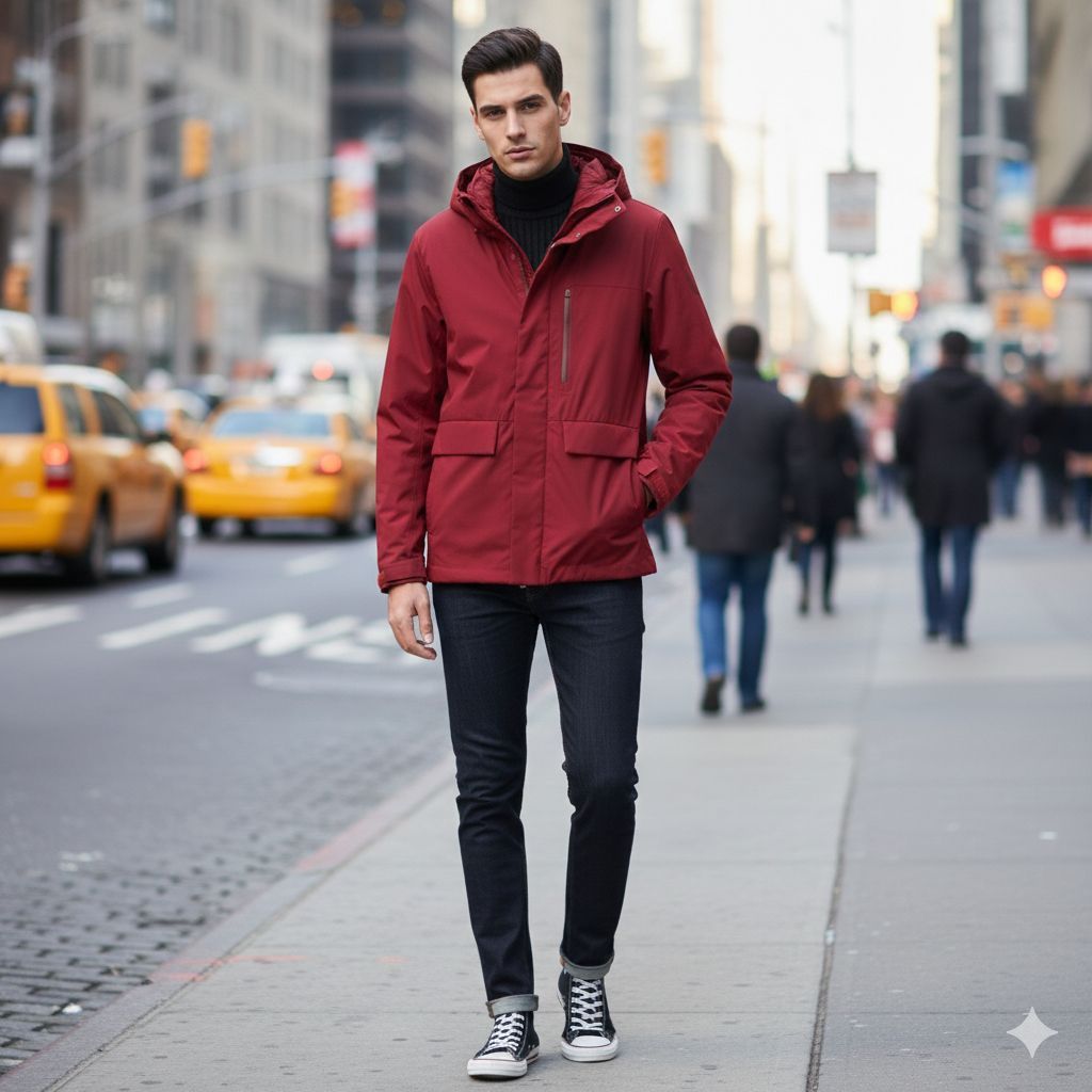 落ち着いた赤でメンズですので男性はもちろん、女性がざっくり着るのもいいかと思います。