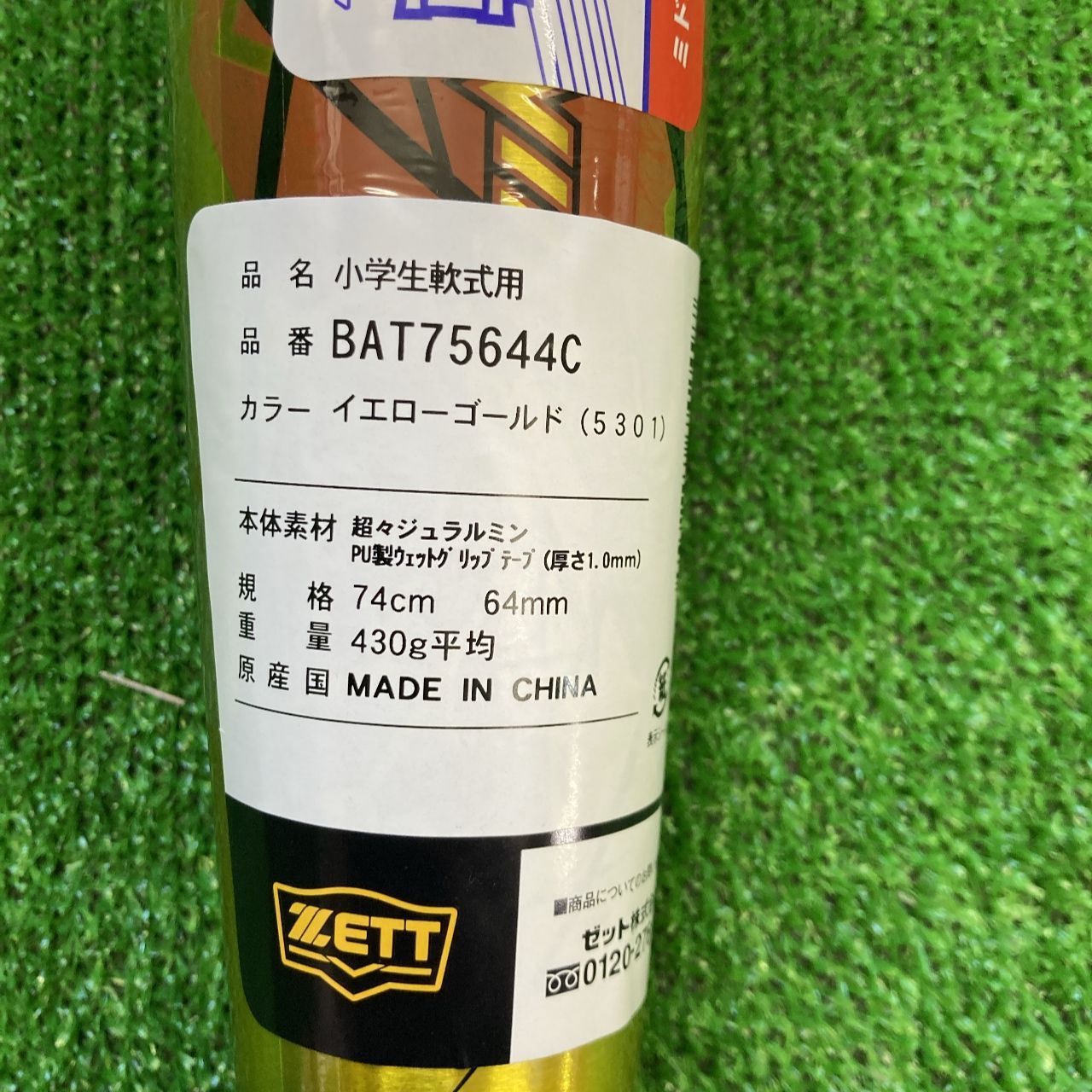 限定色 ゼット 少年軟式用バット 74㎝430g ミドルバランス ゴールド BAT75644C 5301