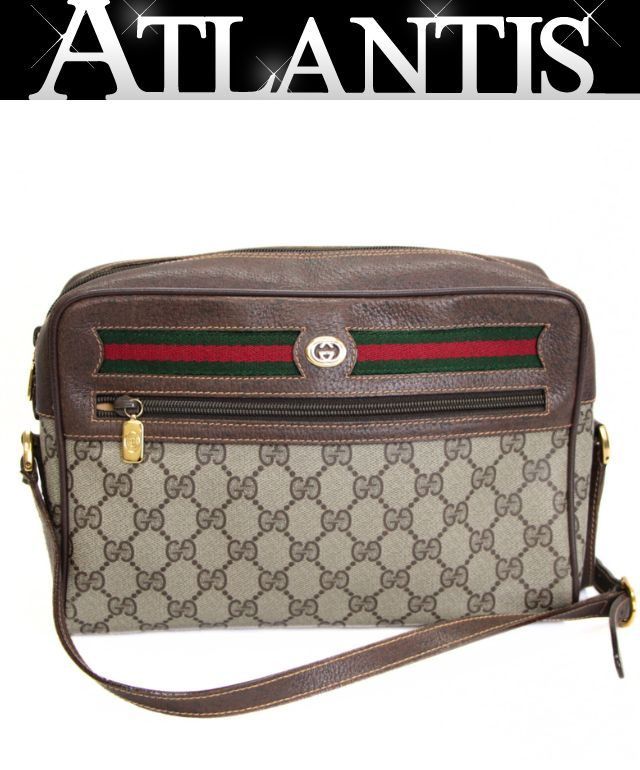 グッチ GUCCI オールドグッチ ショルダーバッグ シェリーライン ミディアム GG柄 PVC ベージュ 【72933】