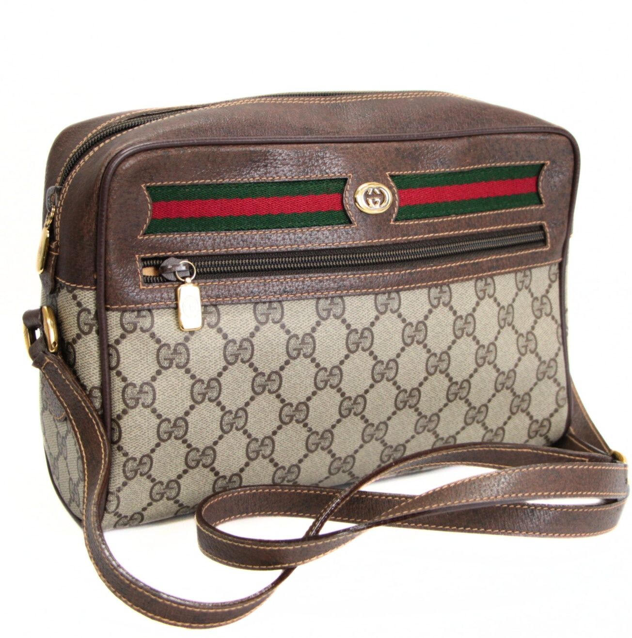 グッチ GUCCI オールドグッチ ショルダーバッグ シェリーライン ミディアム GG柄 PVC ベージュ【72933】