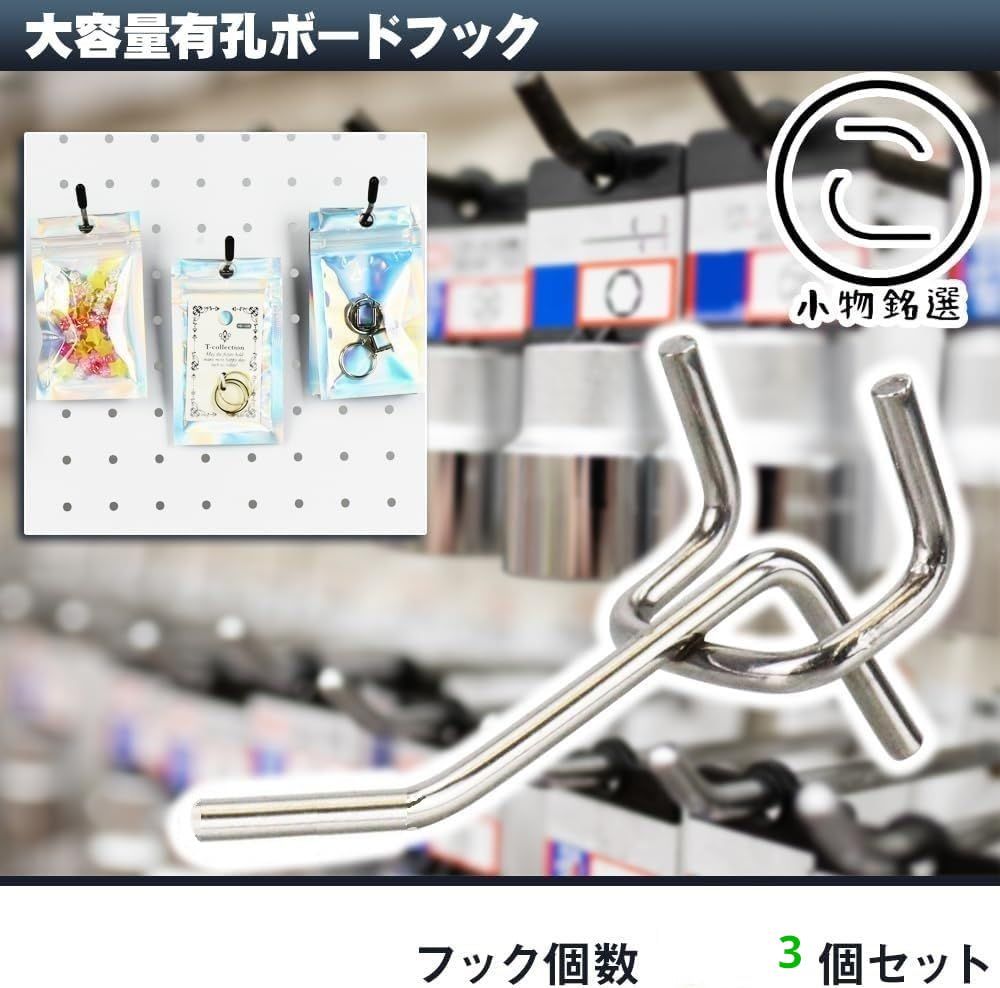 【10cm 3本セット】小物銘選 有孔ボードフック 25mmピッチ スチール製 見せる収納 商品陳列 業務用 3