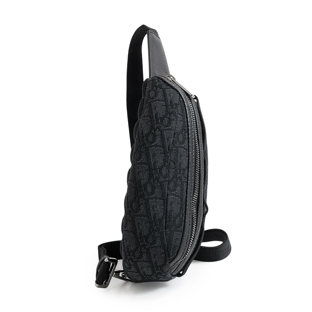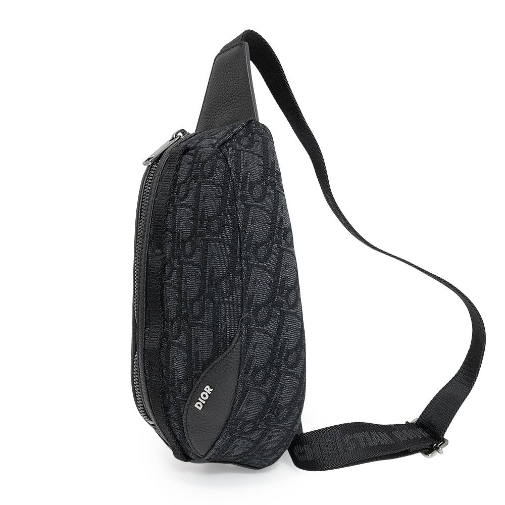 【商品紹介】「Dior Scarab (ディオール スカラベ)」バッグ。ブラックの「ディオール オブリーク」ジャカードが使用されています。多数備えられた実用的なディテールによって、冒険心あふれるモダンなルックを演出します。