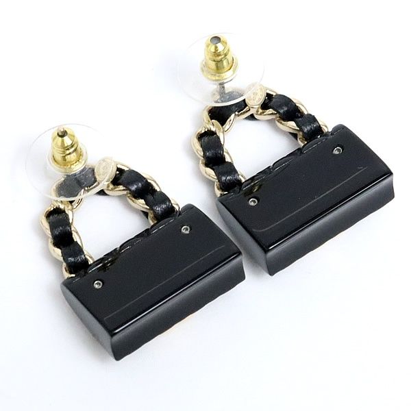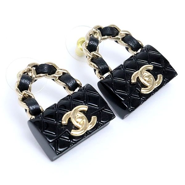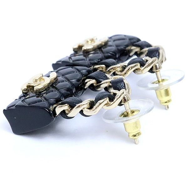【広尾店】シャネル CHANEL ココマーク キルティングバッグ ピアス 黒×ゴールド B23C【17942】
