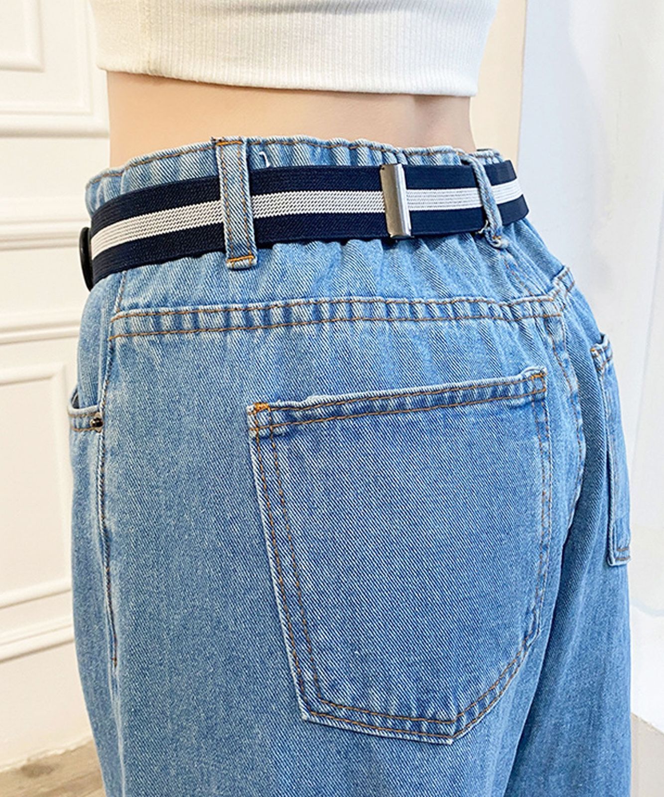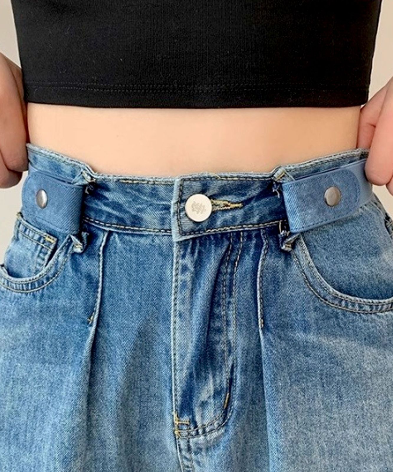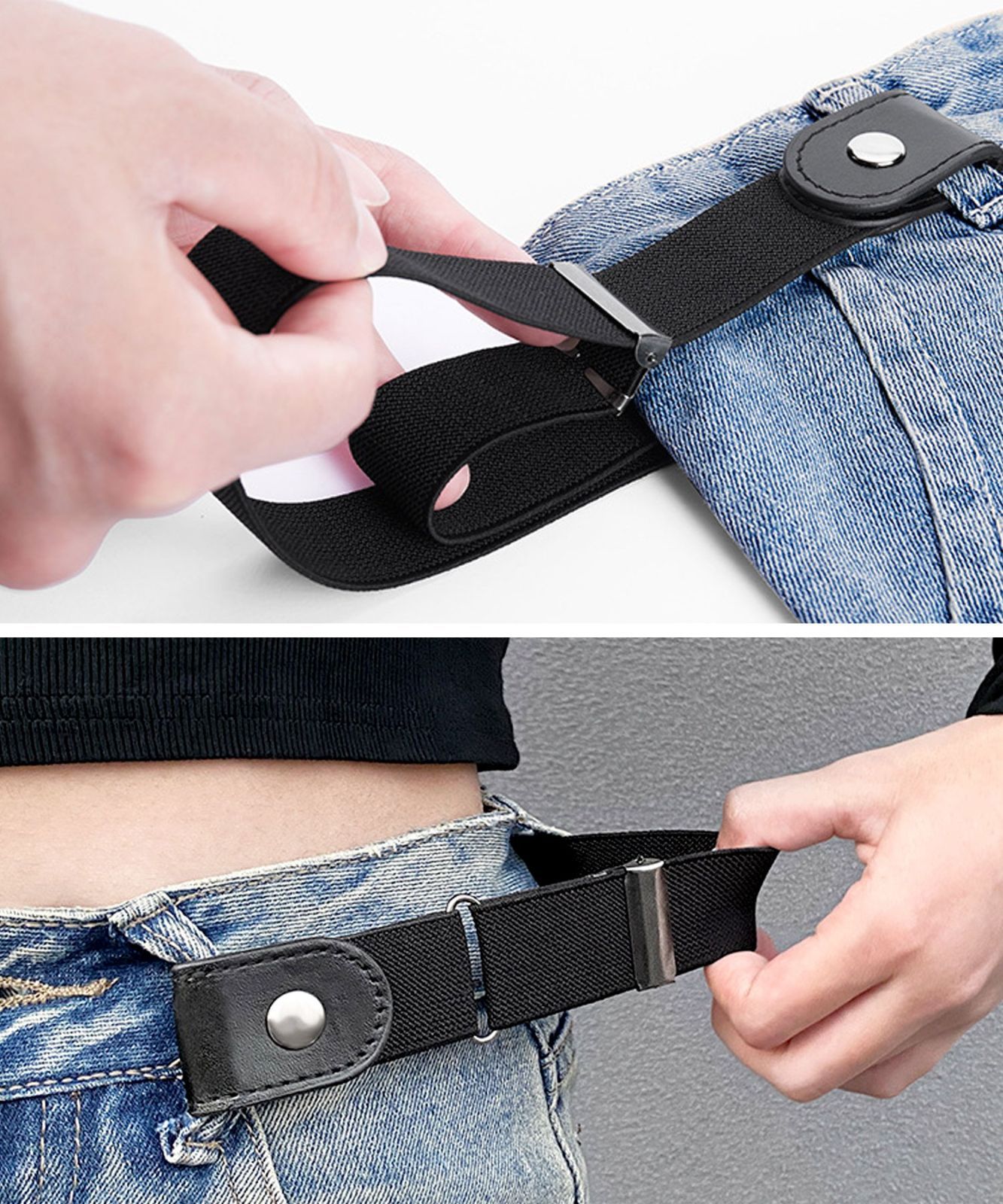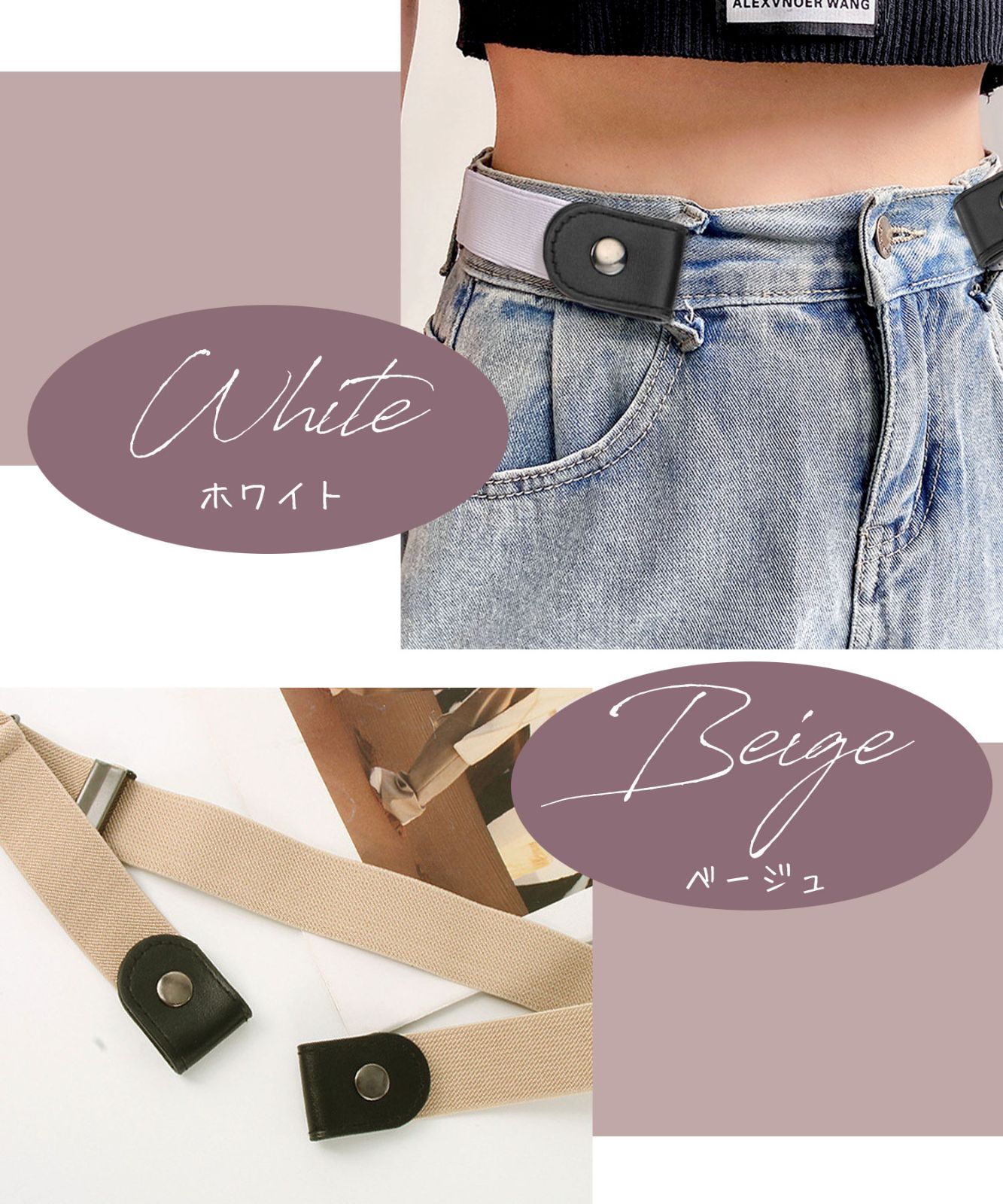 ベルトをループに通して留めるだけ!楽ちんシームレスゴムベルト。
