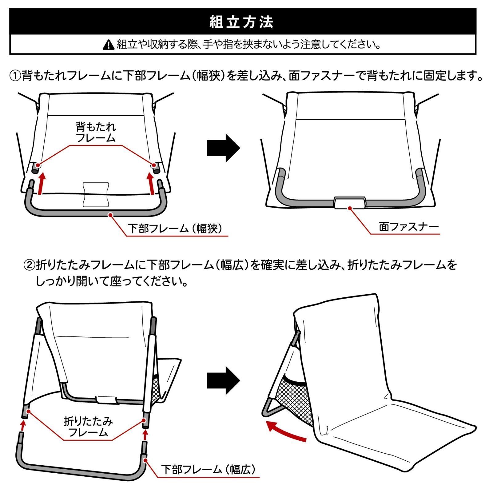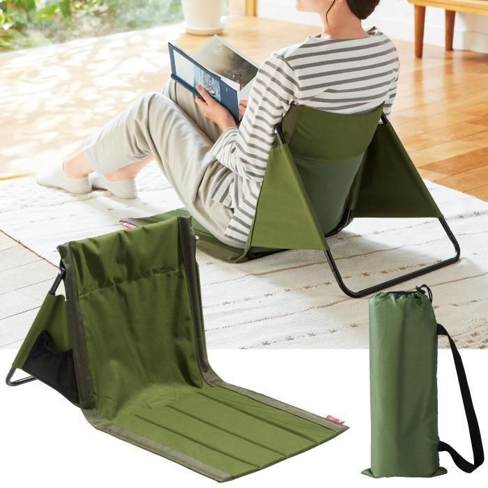 背もたれ付きで地べたの上でも姿勢よく座ることができます。