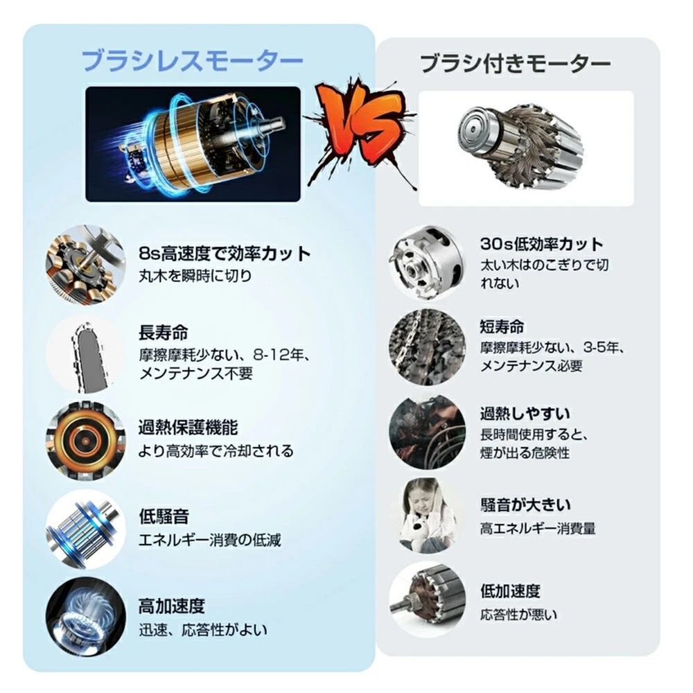 ・純銅モータを搭載され超強動力提供して、丈夫で切削効率が高くて、高速です!!!統合されたガイドプレートは熱をすばやく放散することができて、落下や摩耗に対して非常に耐性があります。