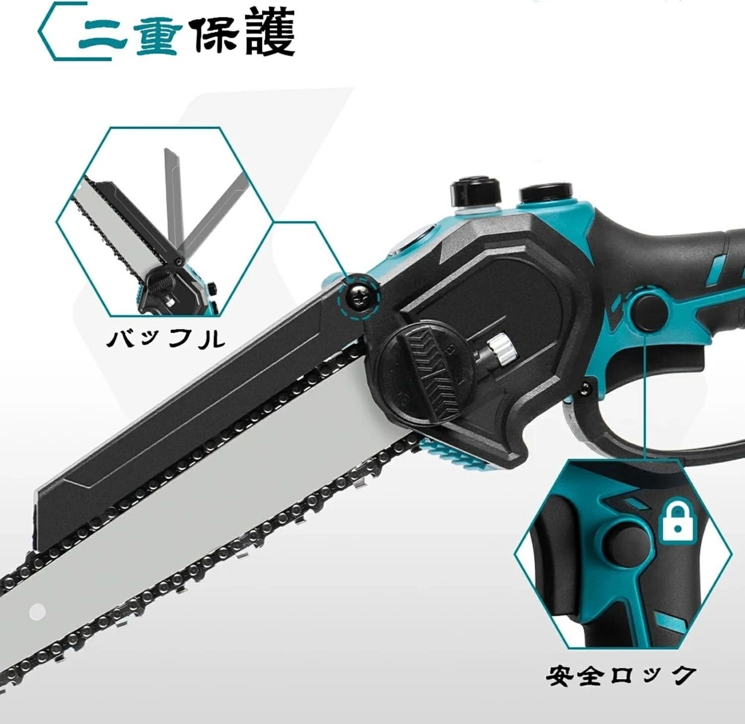 円型ロックボタンが付きなので、誤操作を防止できます。起動する時に2つのスイッチを同時に押す必要があります。それに、滑り止めハンドルのデザインは非常に持ちやすいです。グリップが容易になって、あんぜん性と効率が向上します。