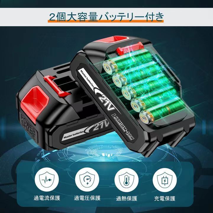 【2個バッテリー付きとマキタの18Vバッテリー通用】