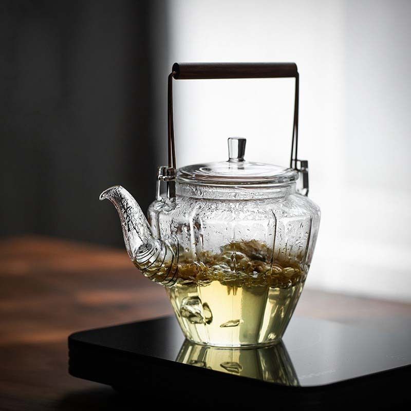※紅茶、ハーブティー、工芸茶、花茶、茶道などおすすめ掌サイズのガラスポット.