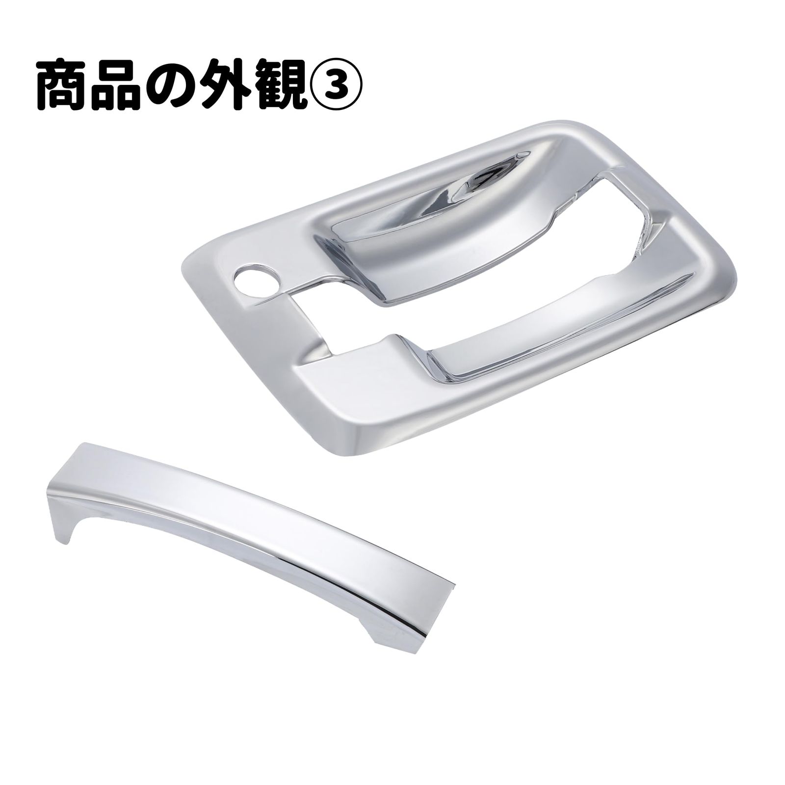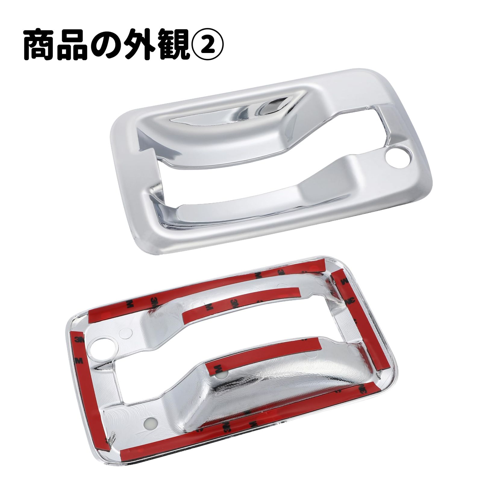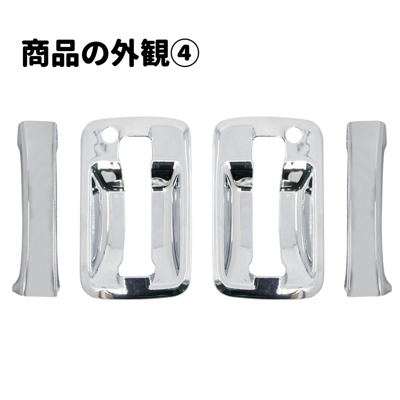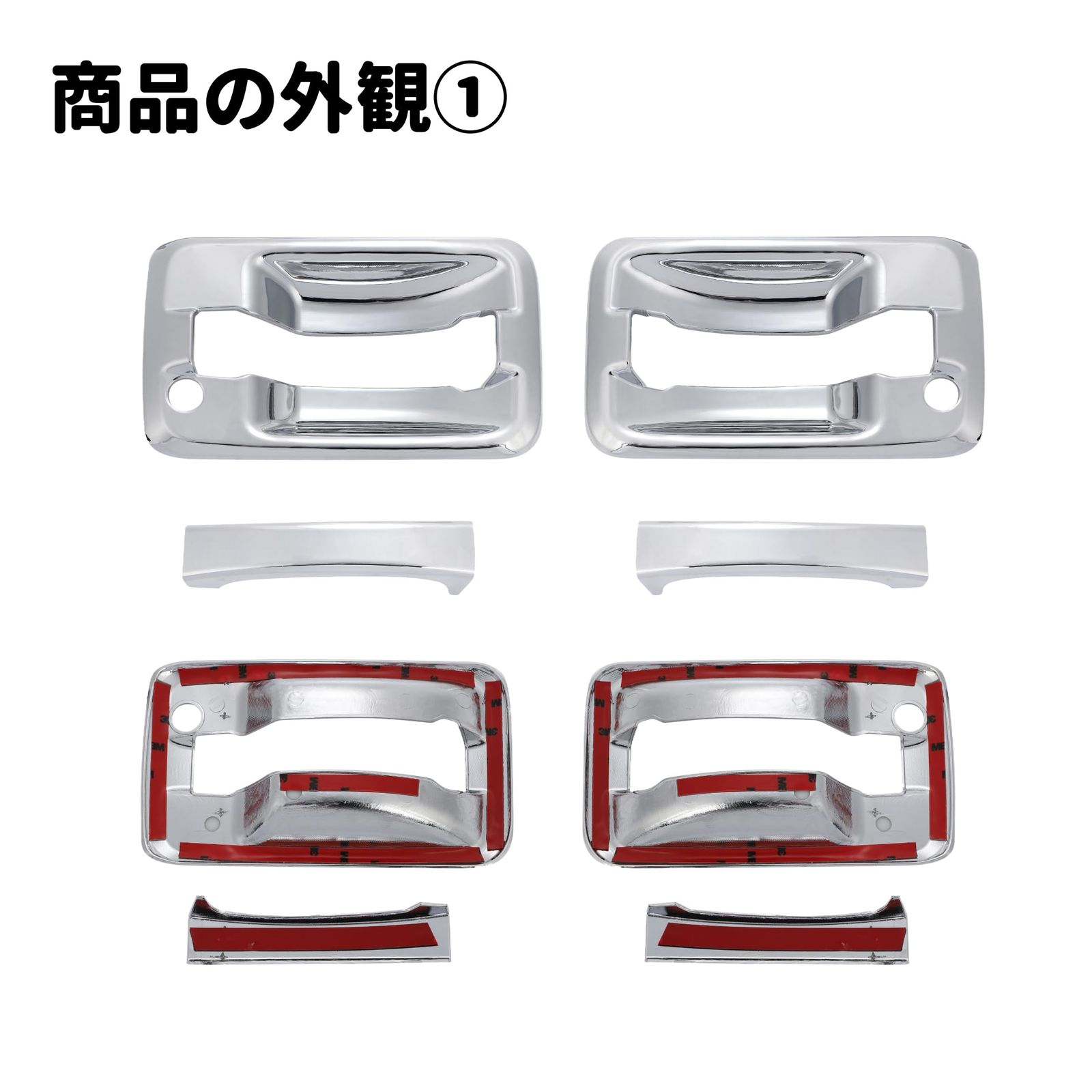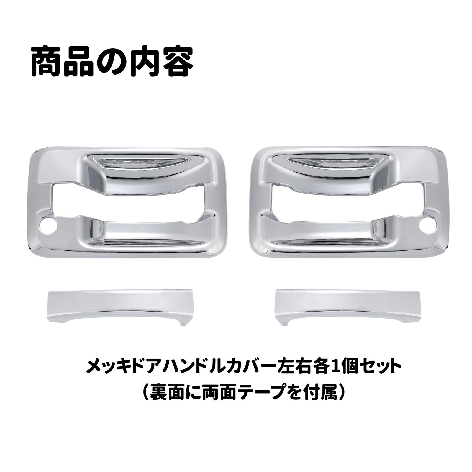 【商品内容】 メッキドアハンドルカバー左右セット×1 【商品仕様】 ・カラー:クロームメッキ ・材質:ABS樹脂製 ・取付:両面テープ貼り付け