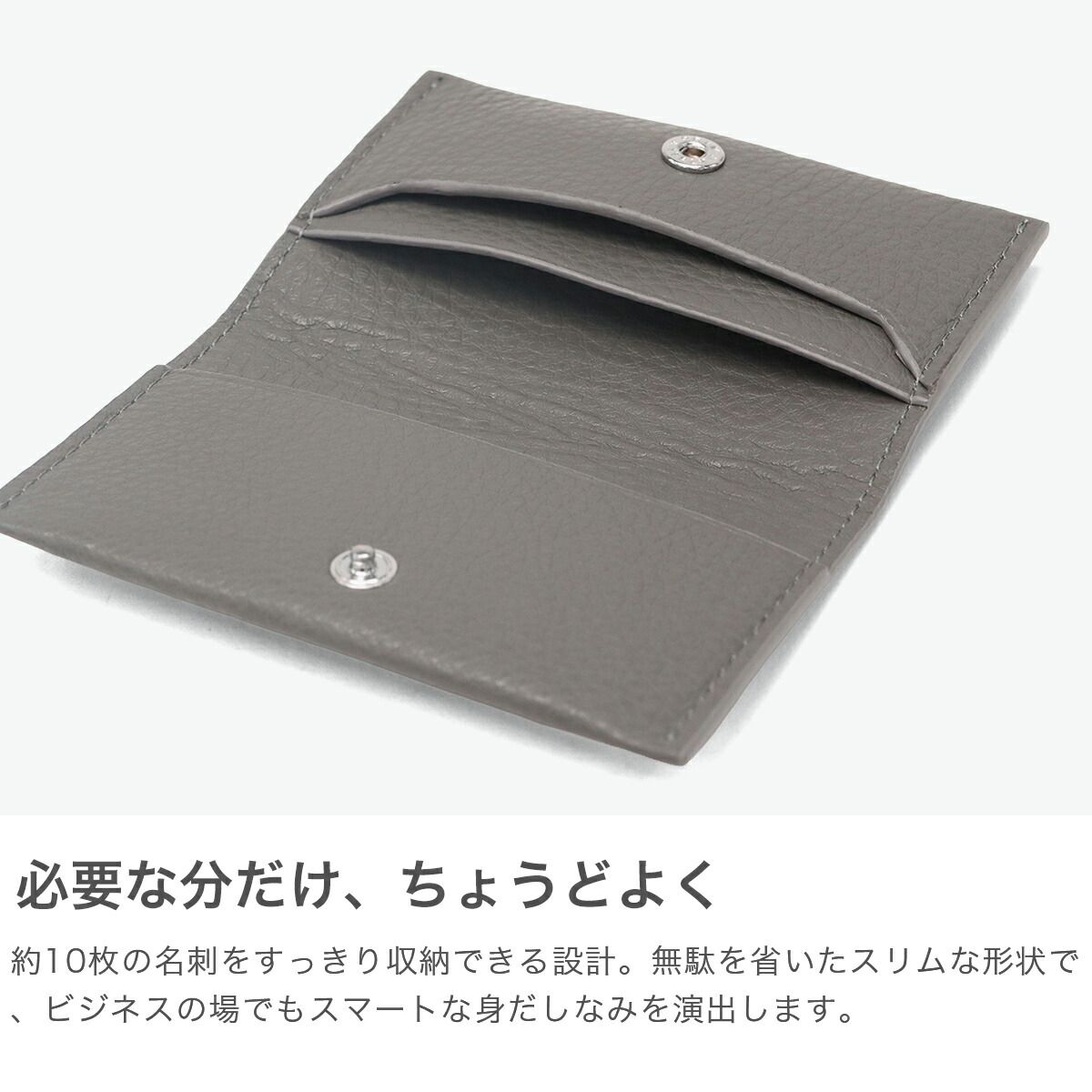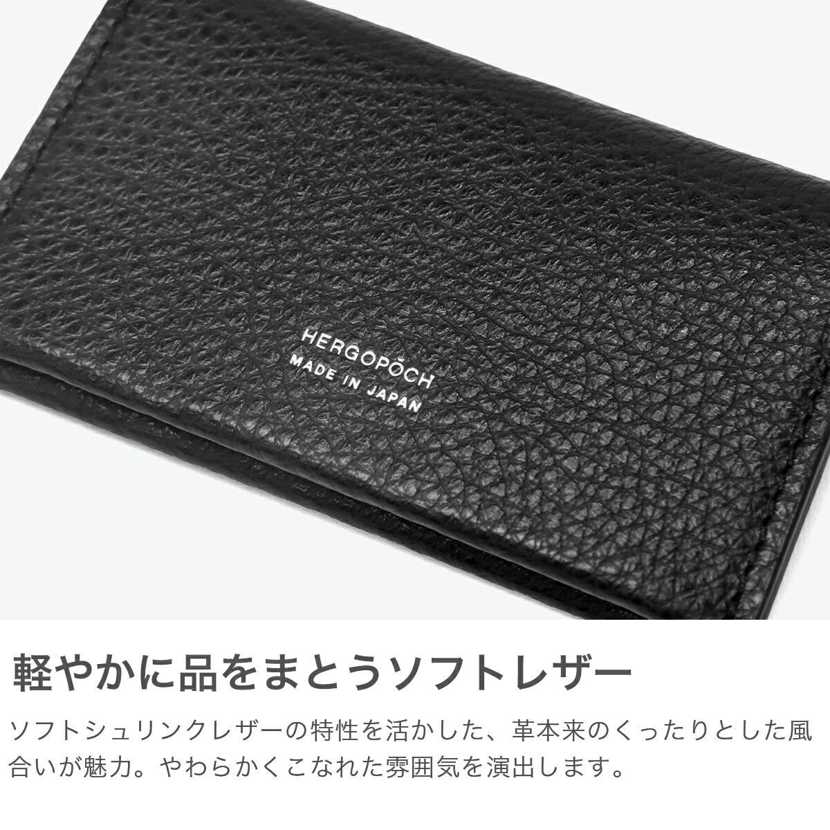 HERGOPOCHの使用するレザーで最もソフトなシュリンクレザーを使用した『TC』シリーズの名刺入れ。ジャケットの胸ポケットにもすっきり収まるスリムデザインです。ビジネスシーンでも身だしなみを損なわない薄さが魅力。ベーシックカラーでどんなスタイルにも馴染み、ギフトにも最適なアイテムです。