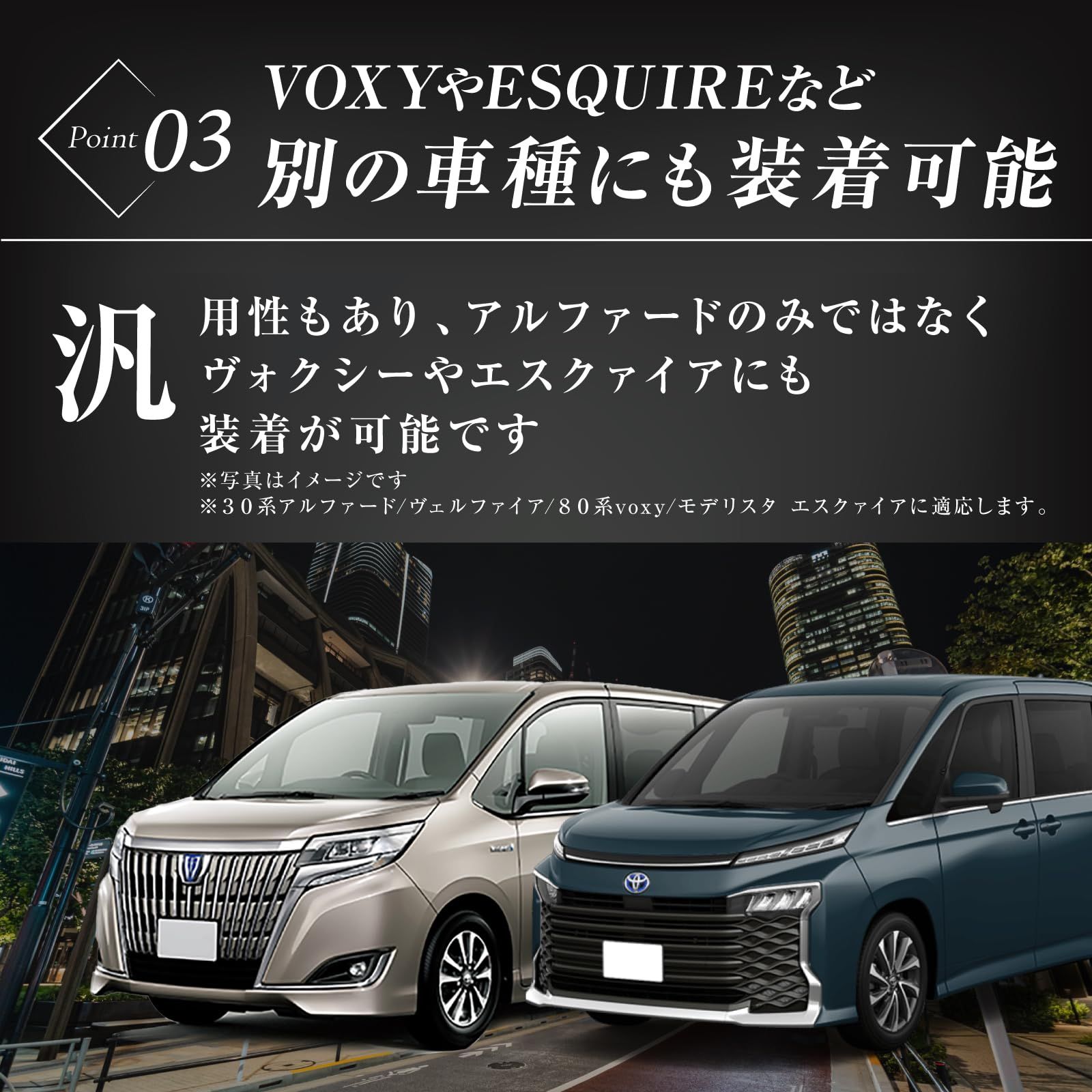 30系に加え、お客様にて加工頂くことで他車種への取付事例もあり汎用性もございます。(適合を保証するものではありません)。【リアビューを引き締めるデザイン】シンプルでエレガントなスタイリング。【ボルトオンで簡単取り付け】特別な工具は不要、手軽にカスタムが楽しめます。一部お客様にて加工が必要な場合がございます。取扱説明書は付属しておりません。当店では取付サポートはおこなっておりませんので、ご不安がある場合は専門店へご依頼ください。
