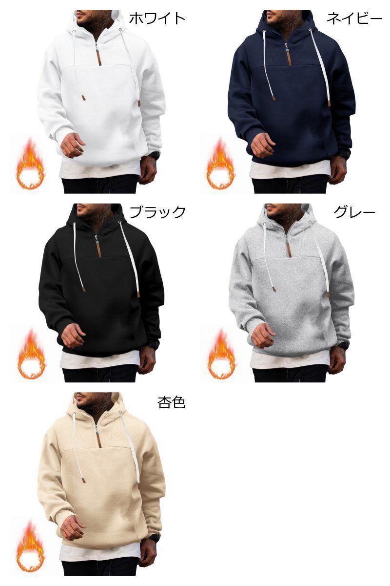 裏起毛パーカー メンズ ハーフジップ プルオーバー フード付き スウェット 厚手 裏起毛 秋 冬 春 暖か 長袖 ビッグシルエット 大きいサイズ 無地 トップス おしゃれ ストリート系 カジュアル シンプル ファッション