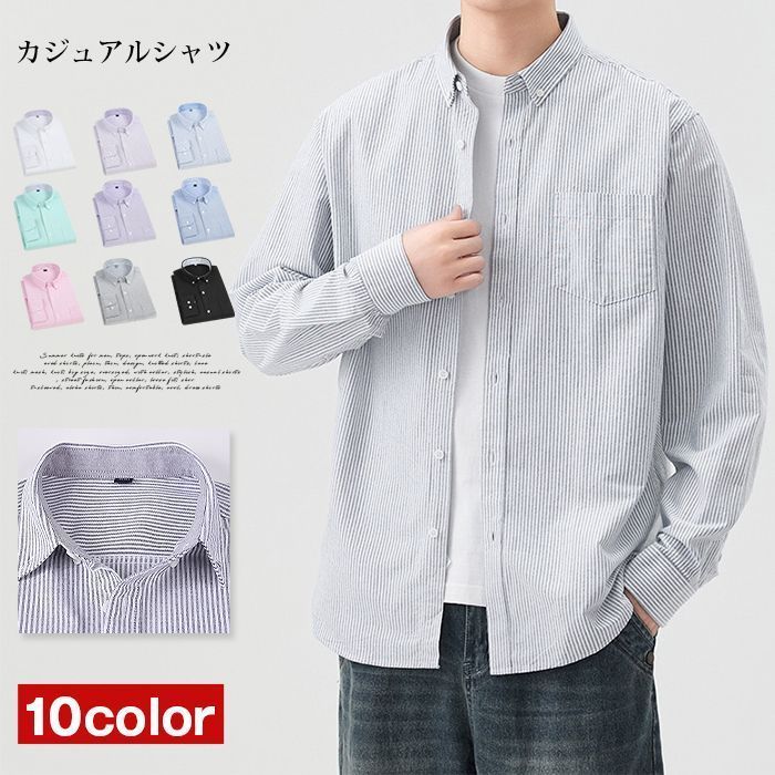長袖シャツ メンズ yシャツ 長袖 メンズ カジュアルシャツ メンズシャツ ストライプ カジュアル ボタンダウンシャツ シャツ 黒 コットンシャツ スリムシャツ おしゃれ ファッション 男性用 新作 秋服 秋
