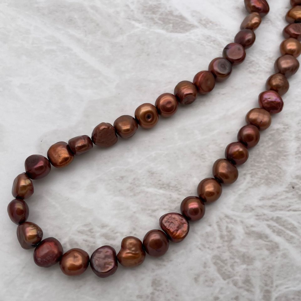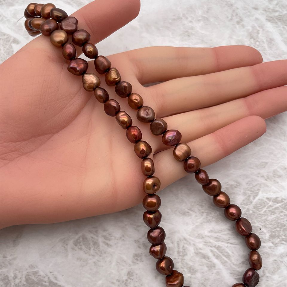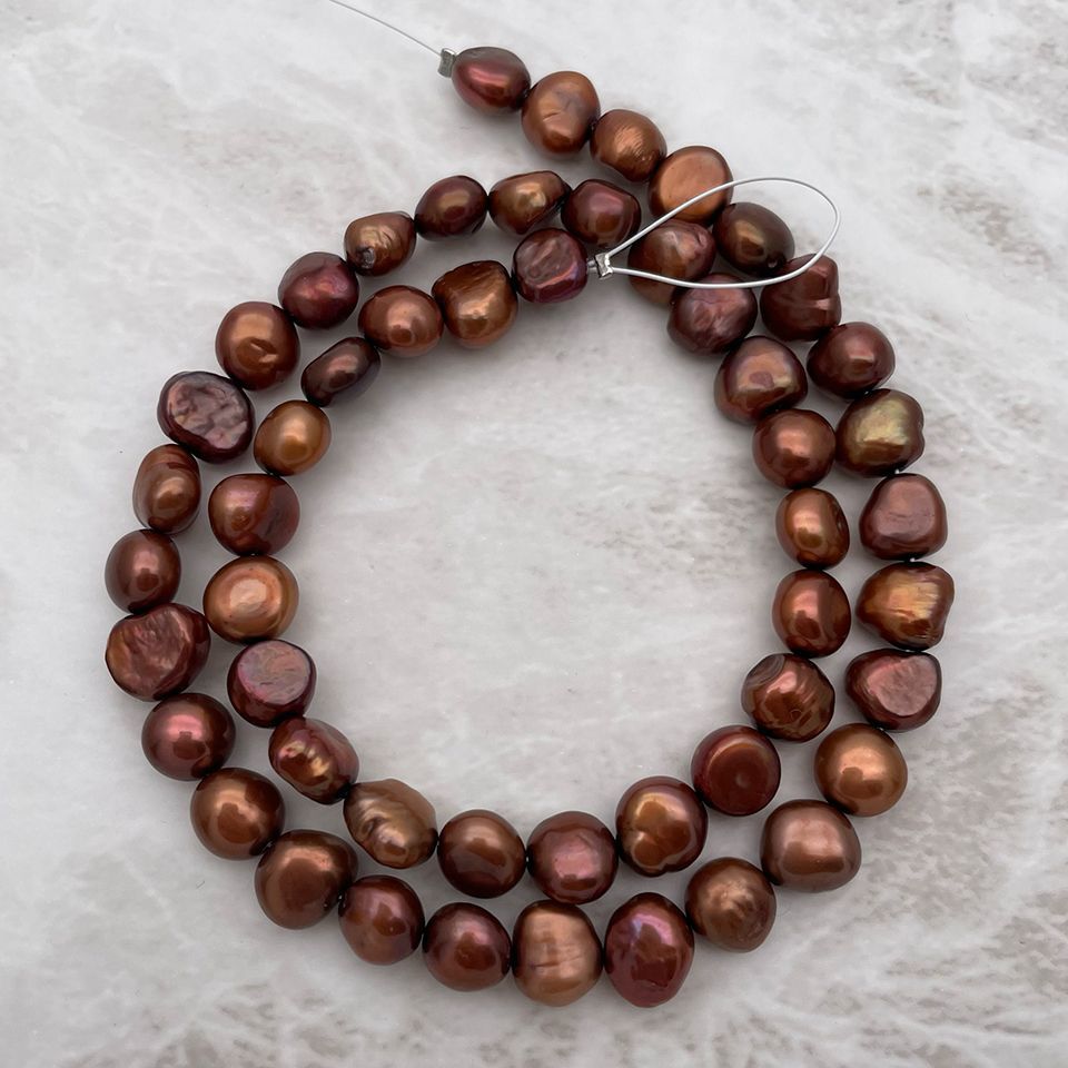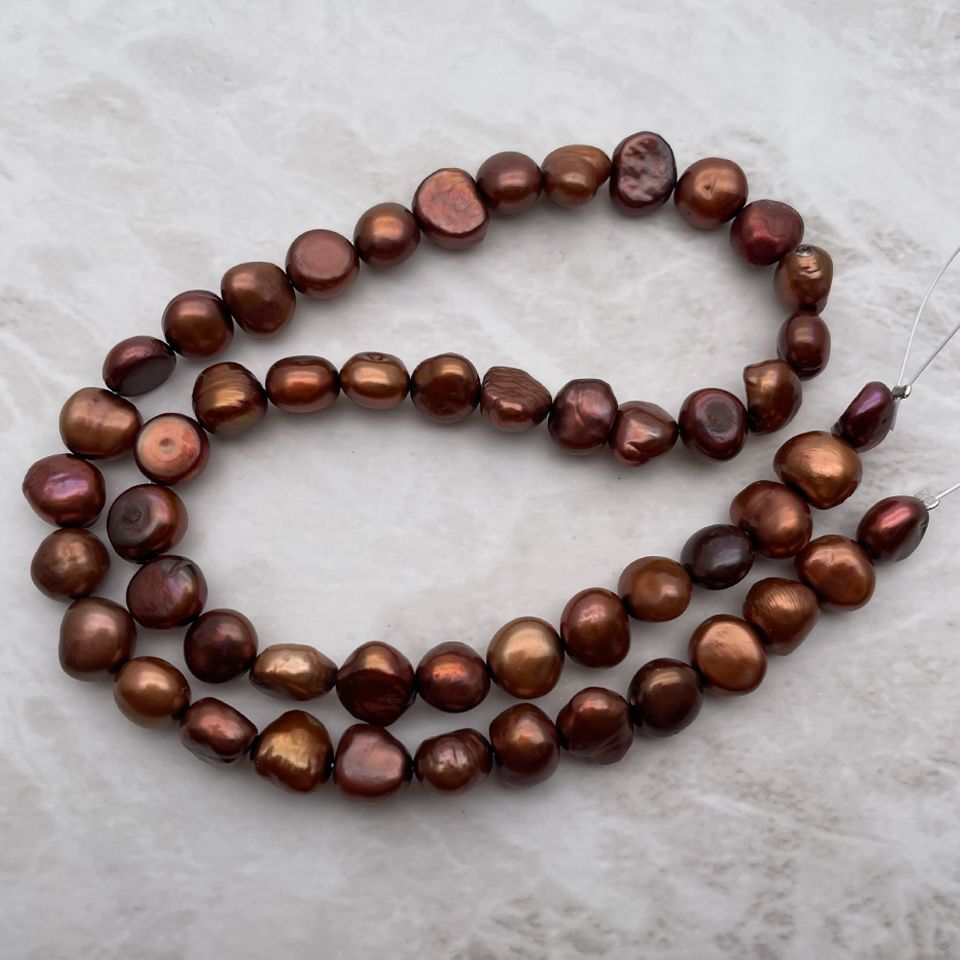 画像では確認しづらい角度にも傷や穴あけ不良などがあるバロックパールの連です。