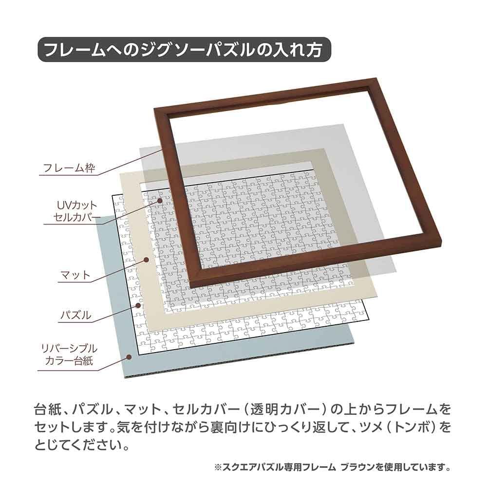やのまん(Yanoman) 木製パズルフレーム スクエアパズル専用フレーム ブラック (25×25cm) セルカバー (透明シート) UVカット (紫外線カット)仕様 リバーシブルカラー台紙 吊りひも付き パネル 額