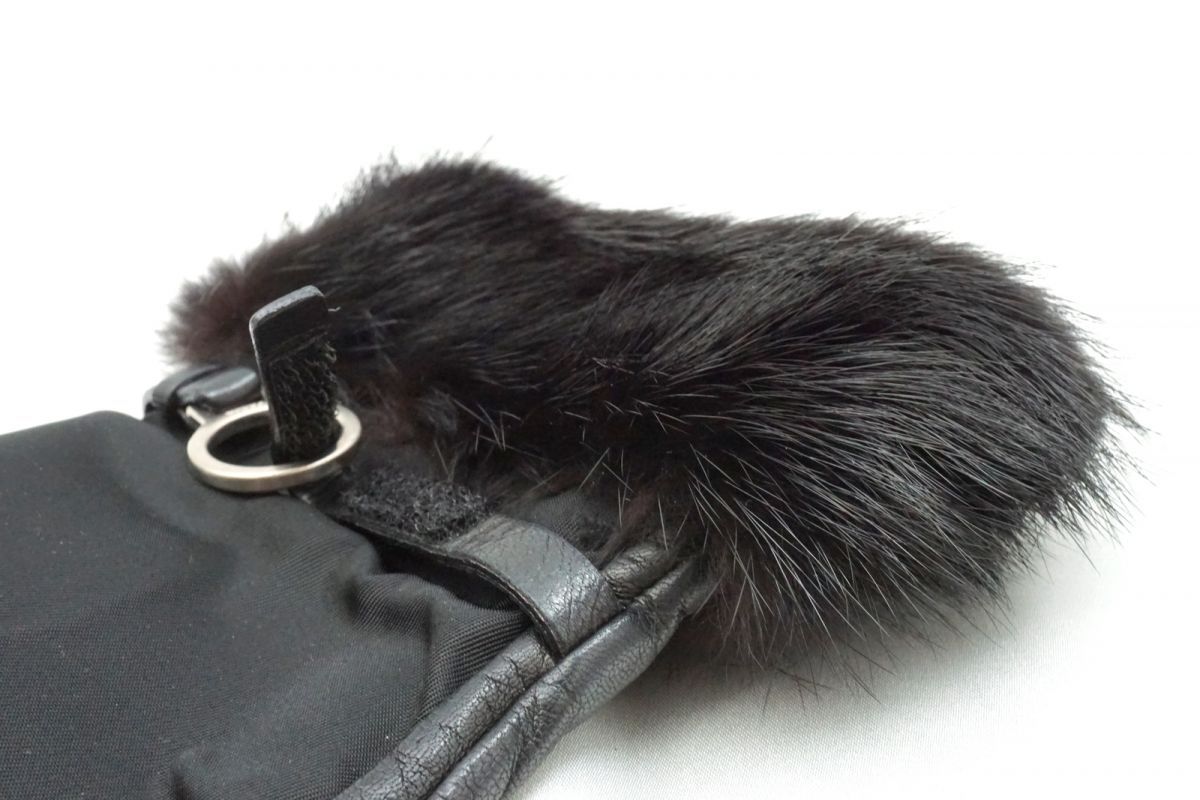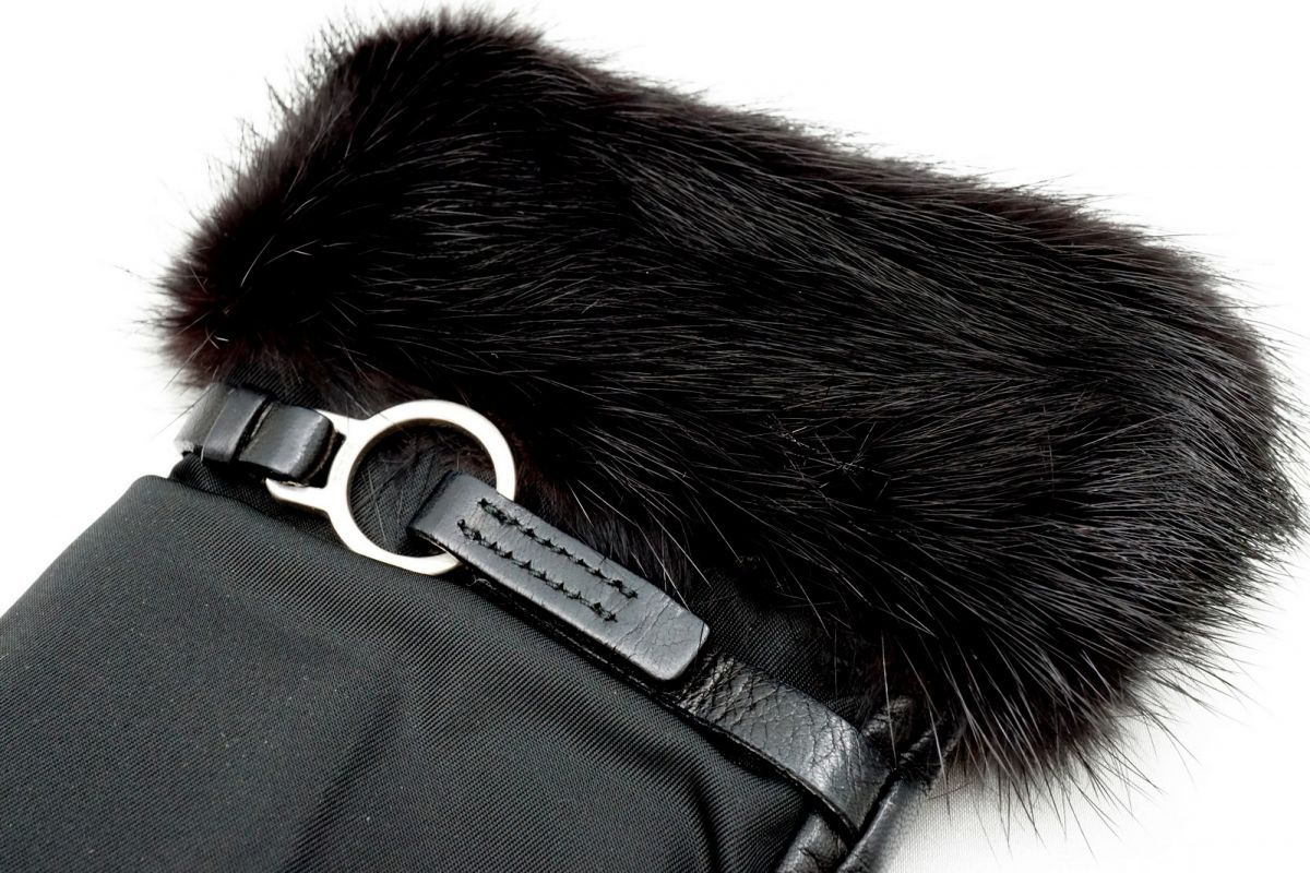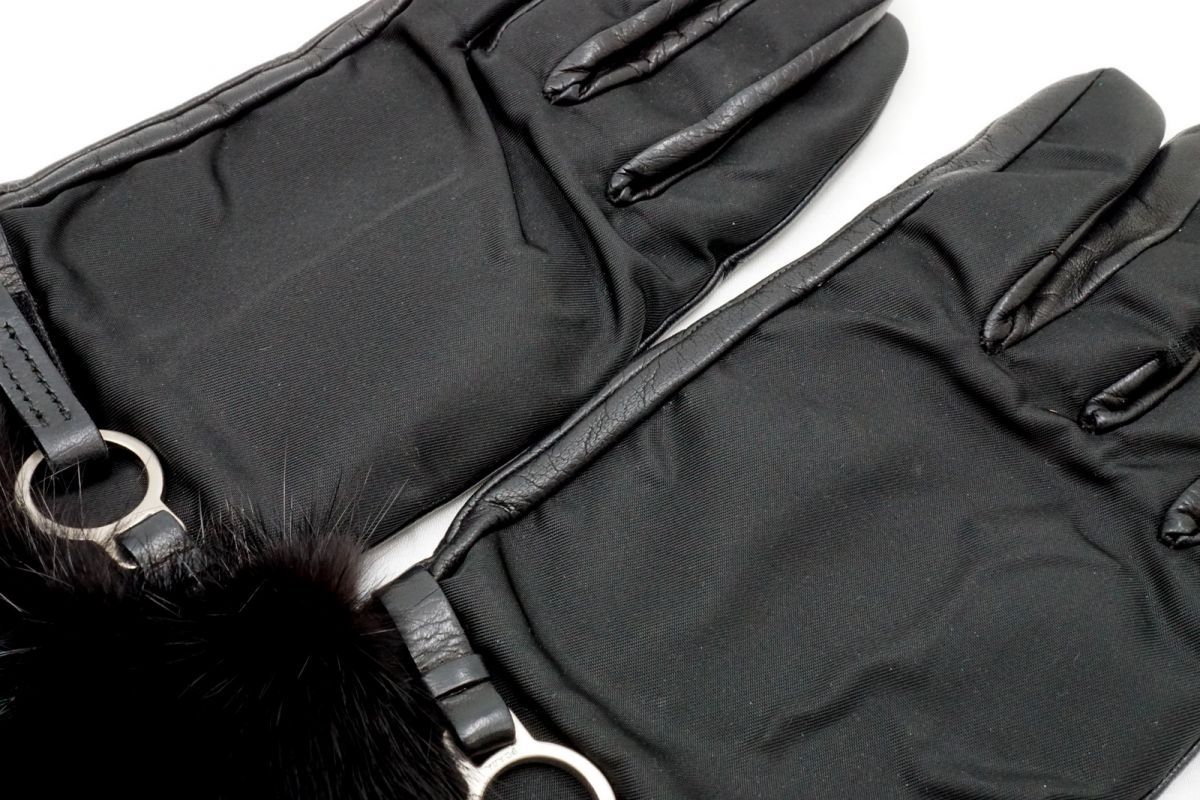 プラダ グローブ 手袋 レディース ミンクファー ベルト付き テスート ナイロン ラムスキン 黒 ブラック PRADA 4830k
