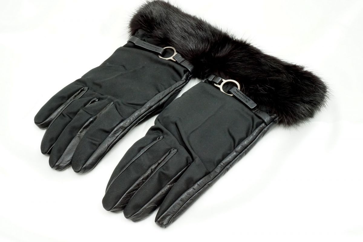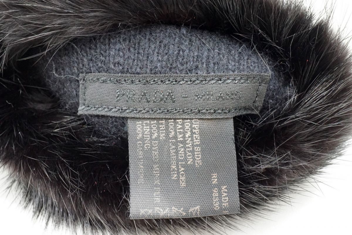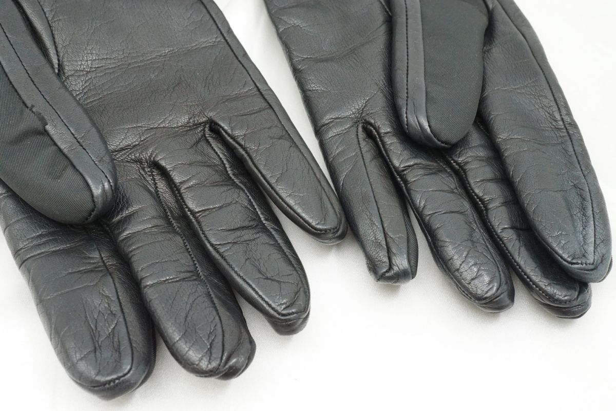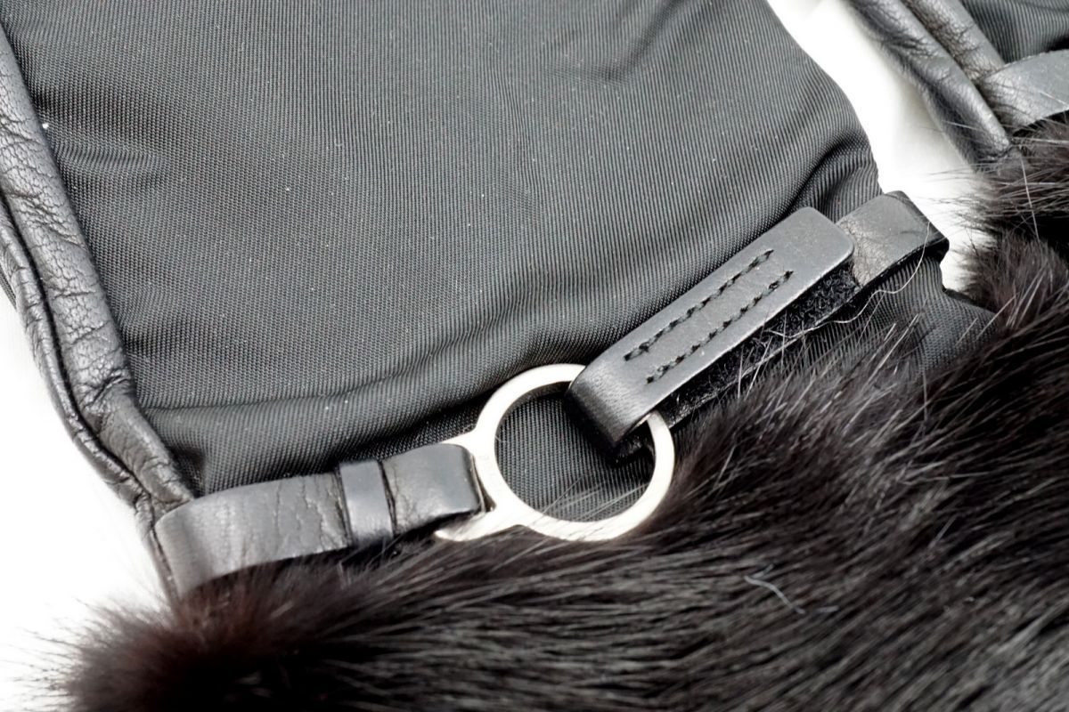 プラダ グローブ 手袋 レディース ミンクファー ベルト付き テスート ナイロン ラムスキン 黒 ブラック PRADA 4830k