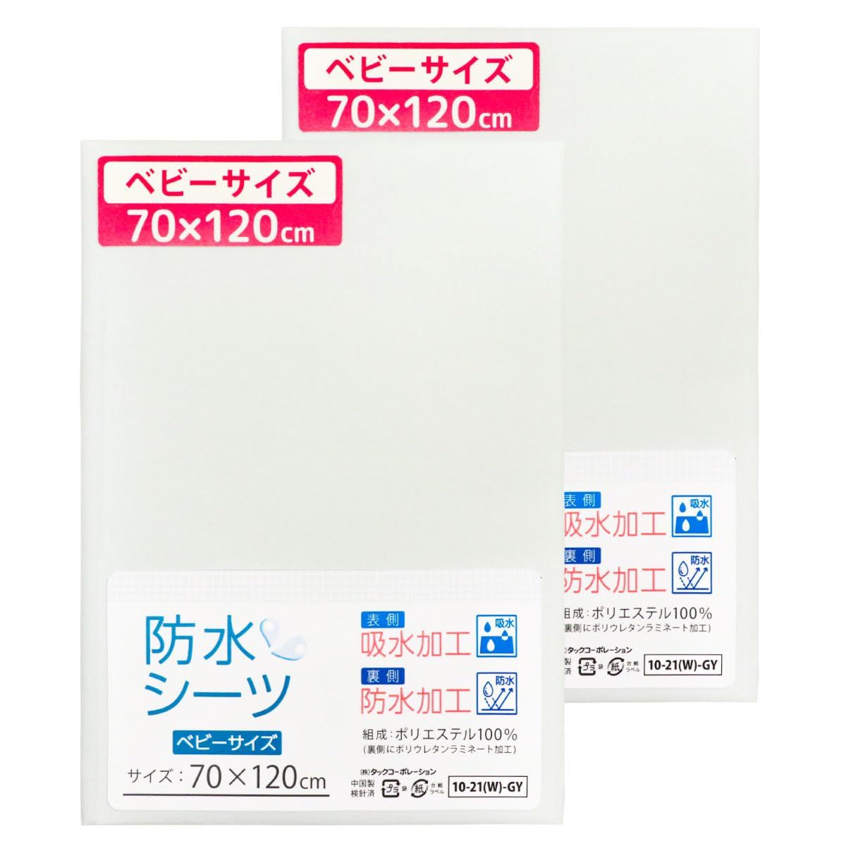 un doudou ベビー 防水 おねしょシーツ 2枚組 70×120cm 吸水速乾 ポリエステル100% 四隅ゴム付き 防水シーツ グレー 10-21W-GY(2)