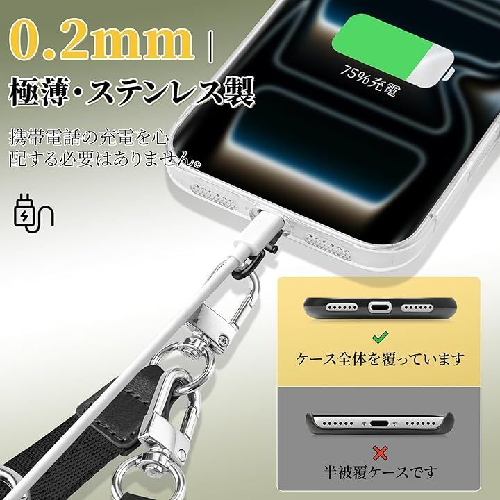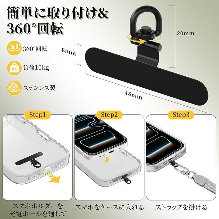 「0.2mm超薄型で、充電も邪魔せず」0.2mmの極薄亜鉛合金製スマホホルダー(1個付属)は、360°回転可能で有線・無線問わず充電中の取り外し不要。丈夫な溶接加工で破損の心配がなく、高品質ナイロン製のストラップもほつれにくい耐久性。