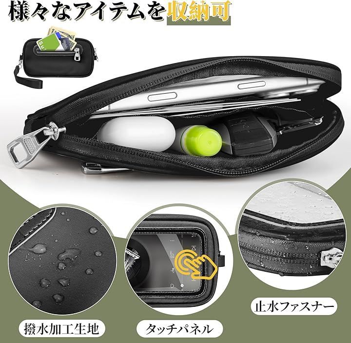 「入れたまま操作可能&大容量収納」撥水ナイロン生地の取り外し可能なウォレット付きます。