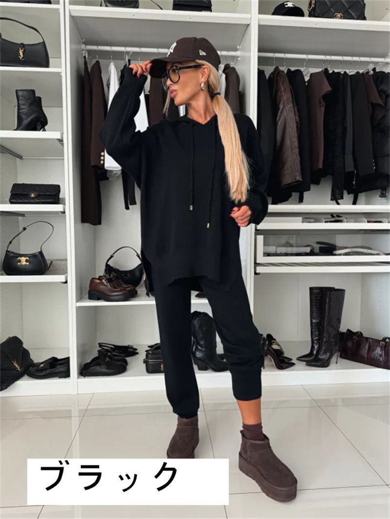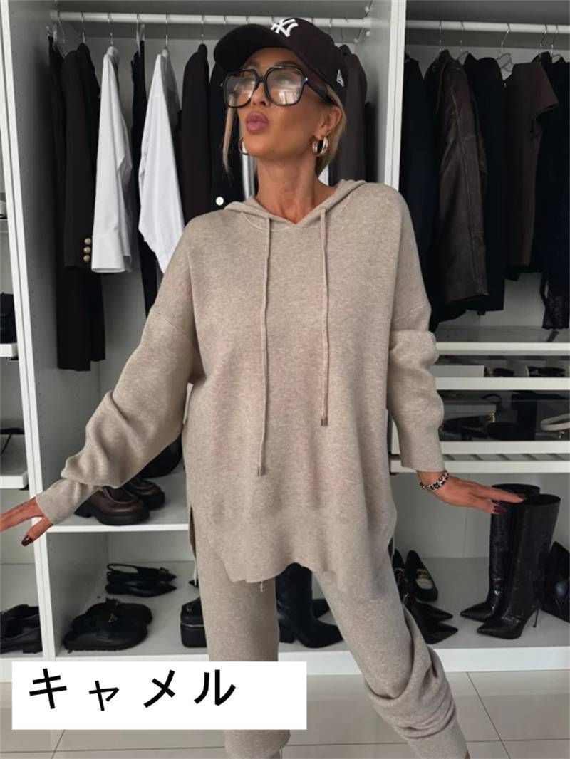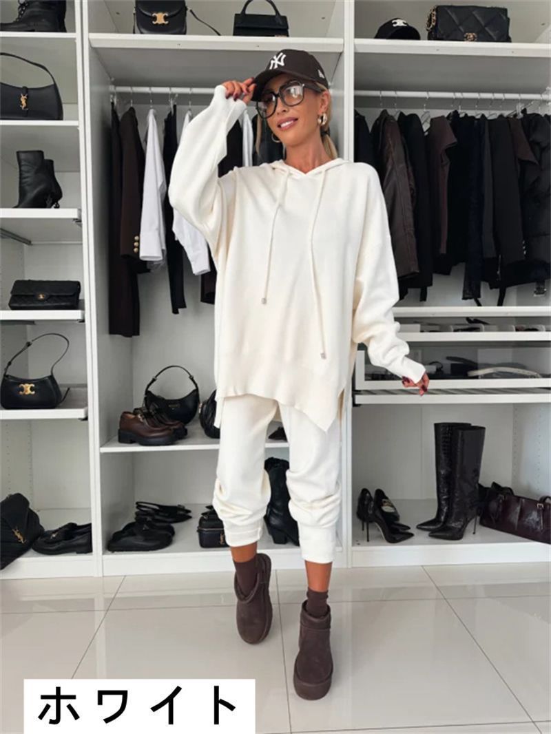 セットアップ レディース ニットセットアップ 上下セット 部屋着 長袖 ルームウェア ニットパーカー ゆったり パジャマ ベーシック おしゃれ 大人 可愛い 外着 リラックス かわいい 柔らかい